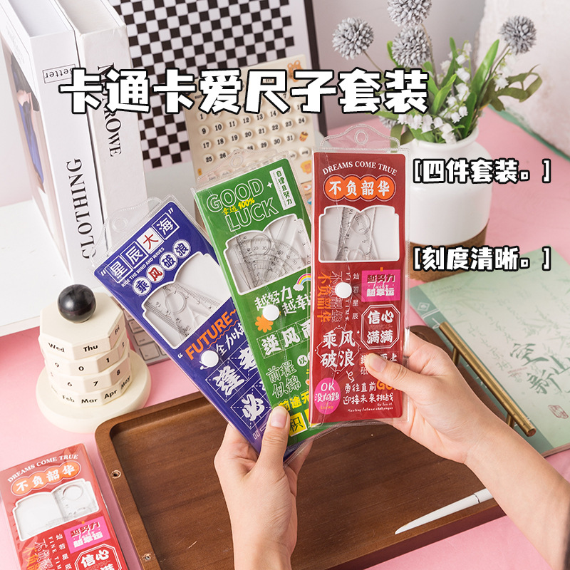 励志文字尺子套装祝福语学生直尺三角板量角器四件套透明套尺尺子