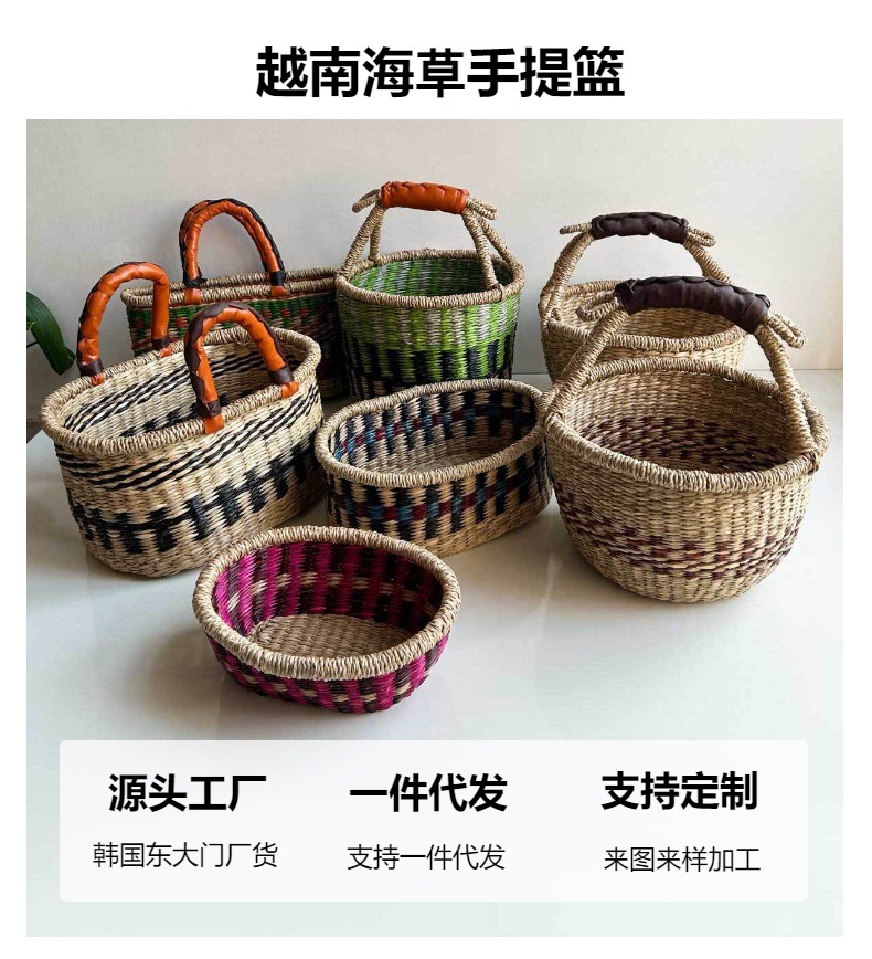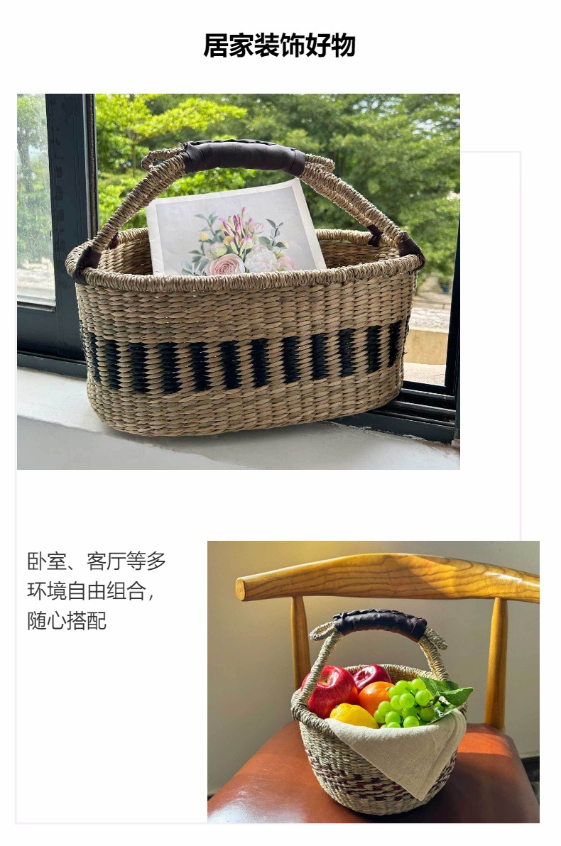 草编篮子由越南村民纯手工编织而成,并非机器量产,会存在接头、色差、毛刺等手工痕迹属正常现象。草编产品在运输过程中可能会遭受挤压变形,收到货后可自行按压恢复原样。