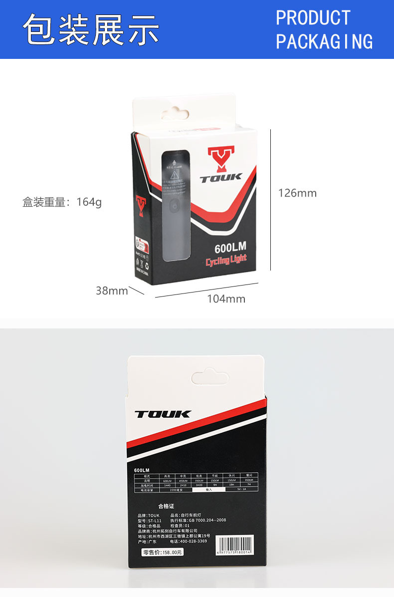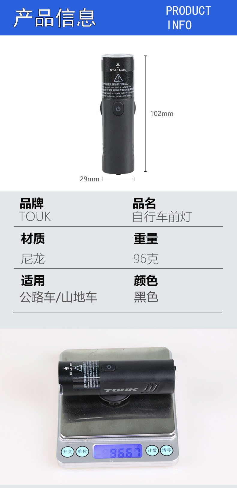 TOUK拓刻自転車ヘッドライト600流明道路車照明灯吊りマウンテンバイク夜騎乗装備