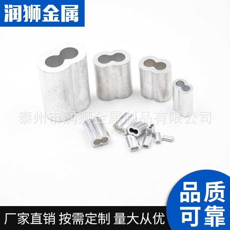 潤獅 スチールワイヤーロープ用アルミスリーブ、8字型アルミスリーブ、二穴アルミスリーブ、アルミクランプ、各種サイズ揃い、楕円形