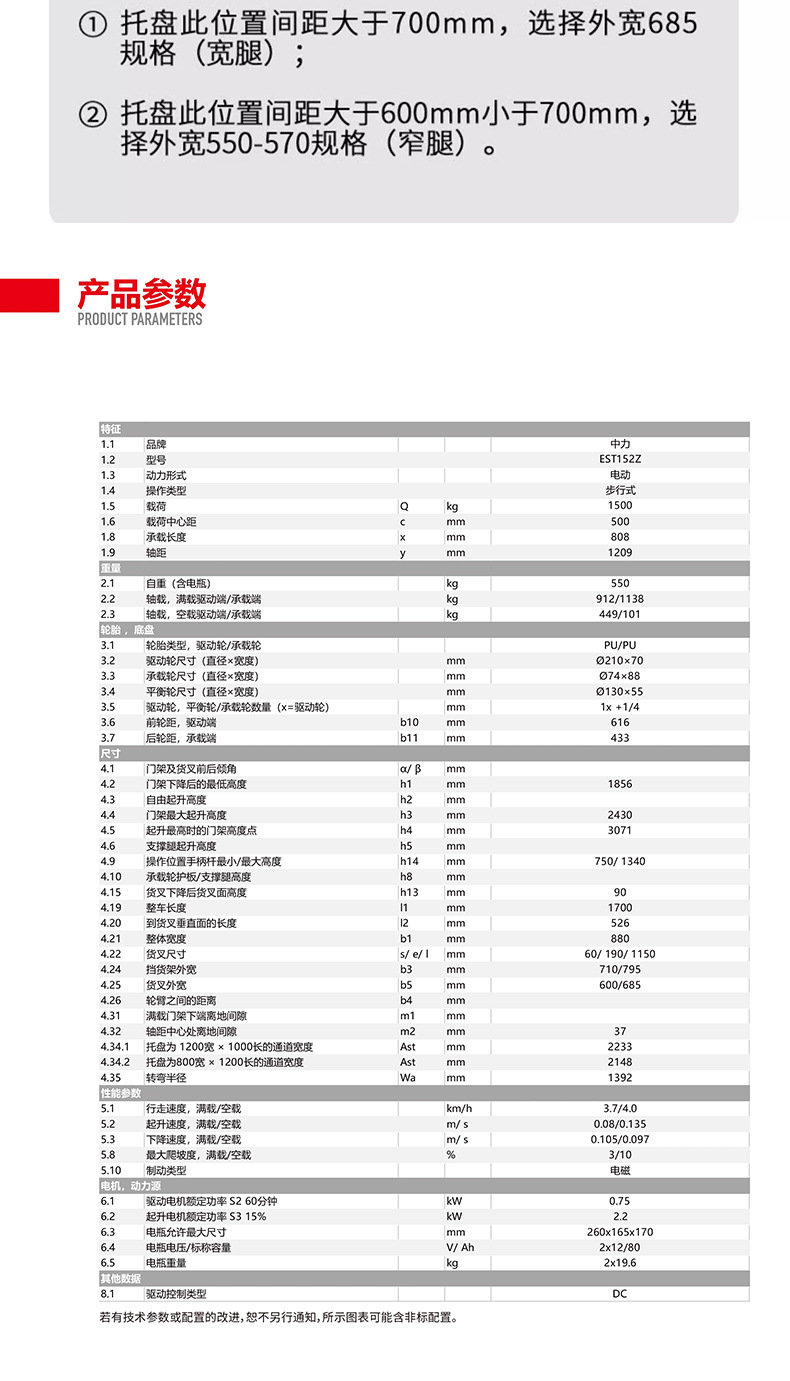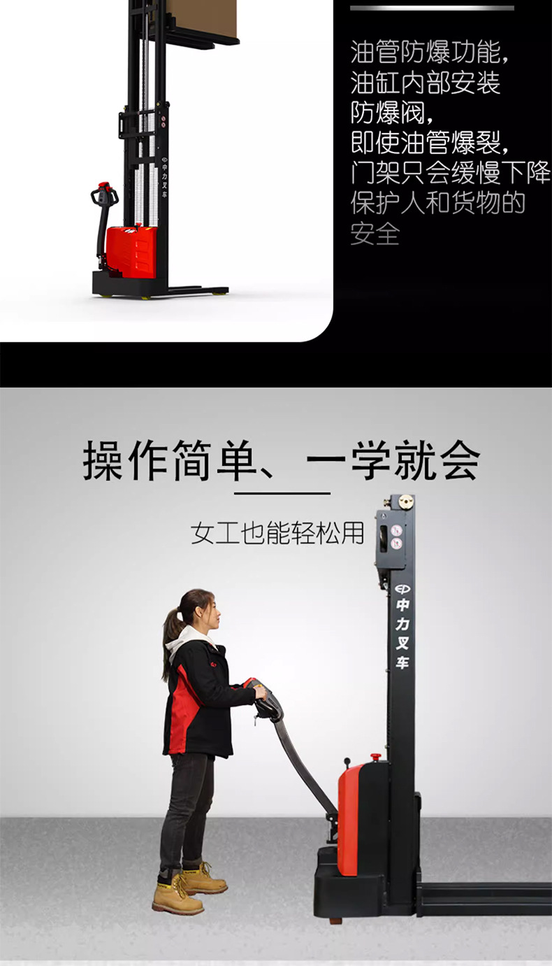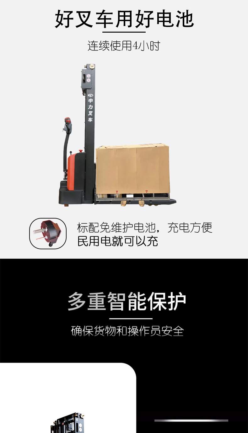 中力1.5トン経済型歩行式全電動スタッカフォークリフト電気ボトル油圧上昇荷車フォークリフト