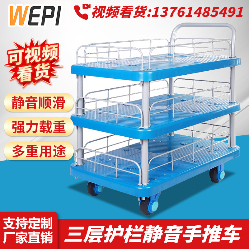 WEPI三階ガードレール手押し車台車荷車荷車荷物車プラスチック平板運搬車ワゴン