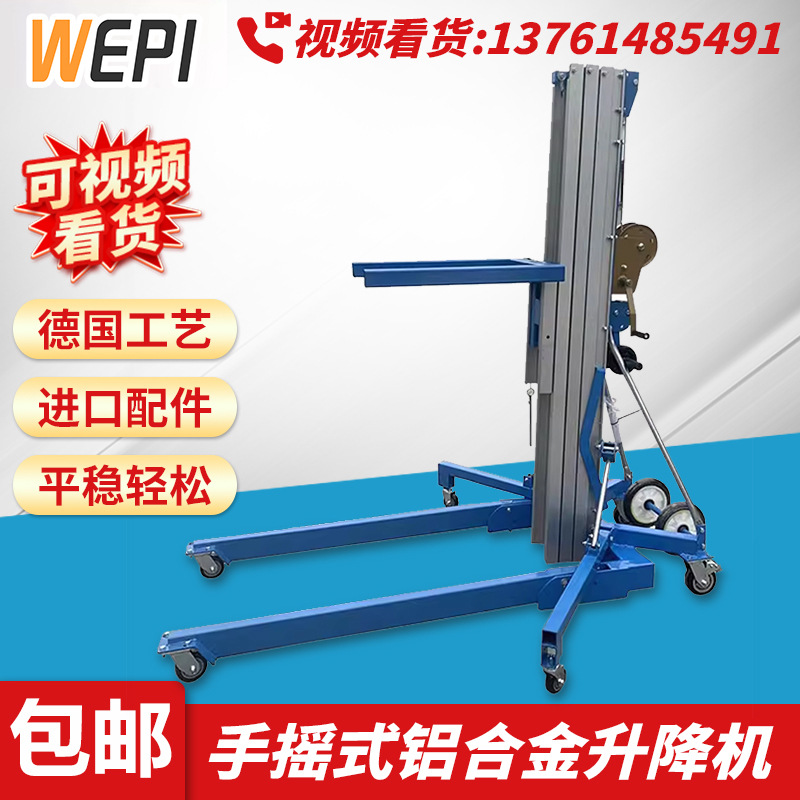 唯品手回し式アルミニウム合金昇降機手動物機展示会昇降プラットフォーム5移動式上昇車