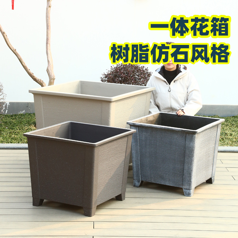 特大サイズの正方形の花箱樹脂は石をまねて厚い花箱を作ってセメントの屋外のデパートの専用の栽培箱の正方形をまねます。