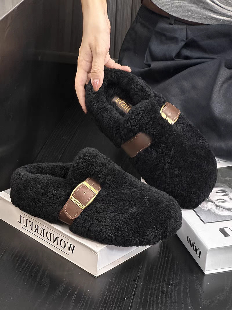ファッションの子羊の毛包頭の毛の半分は2024秋の新型の足で綿のスリッパを踏んで保温します。
