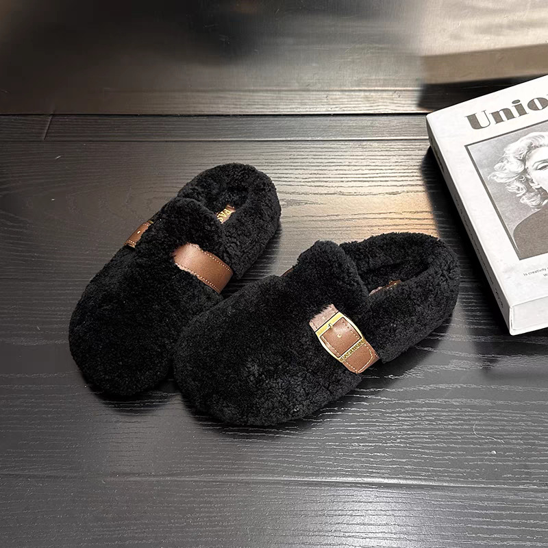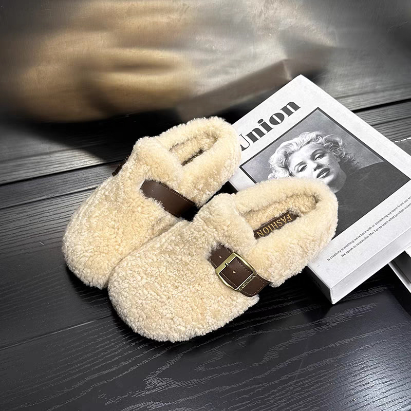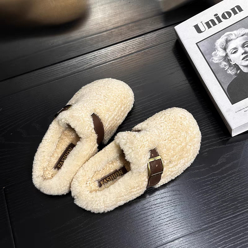 棉鞋居家勃肯鞋玛丽珍毛毛鞋女外穿加绒保暖秋冬季新款豆豆鞋女鞋