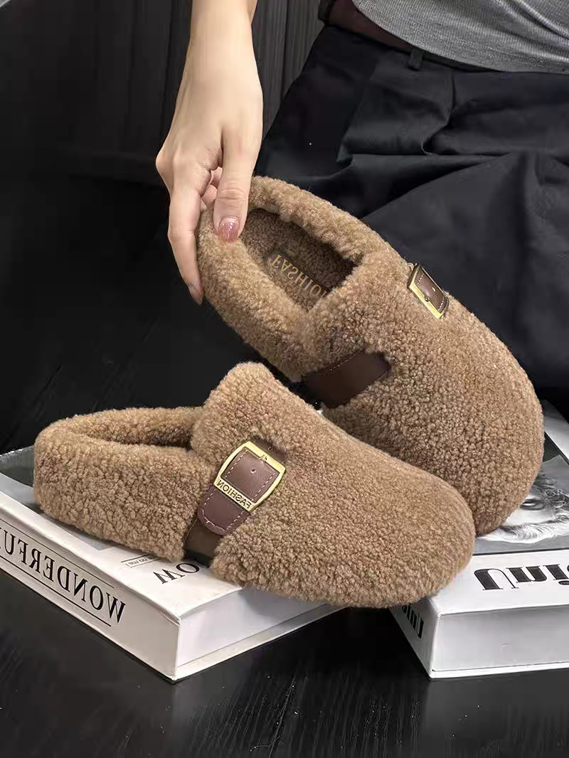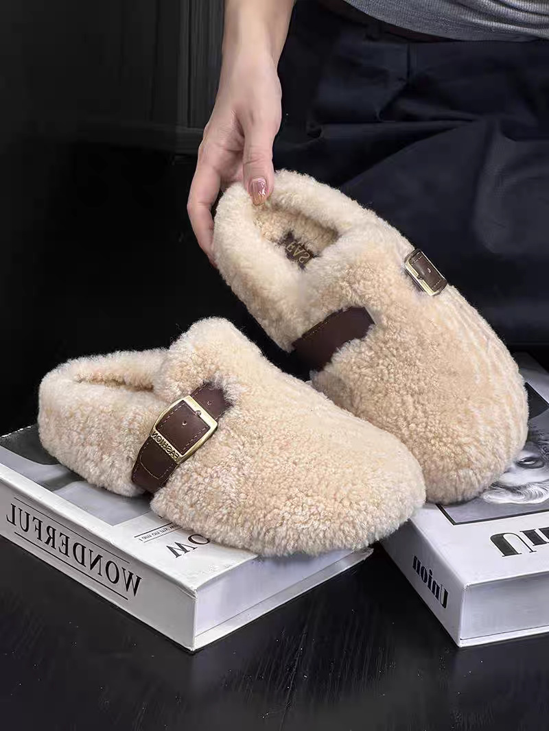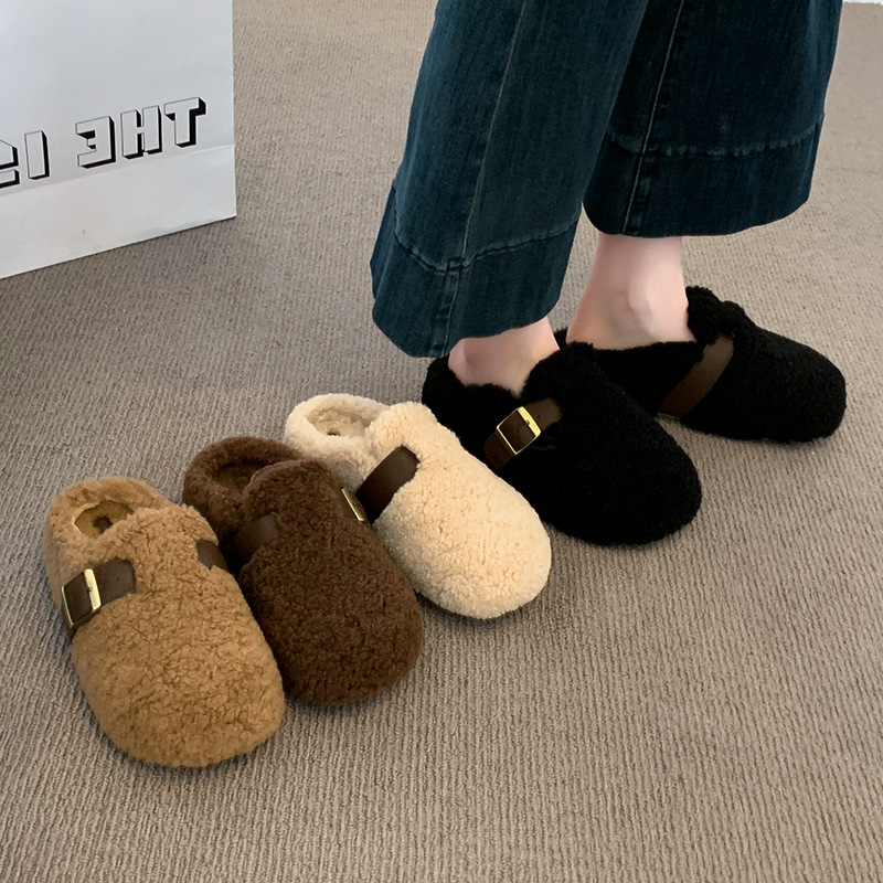 秋冬2025包头厚底半拖鞋毛毛一脚蹬外穿时尚女新款保暖拖鞋羊羔毛