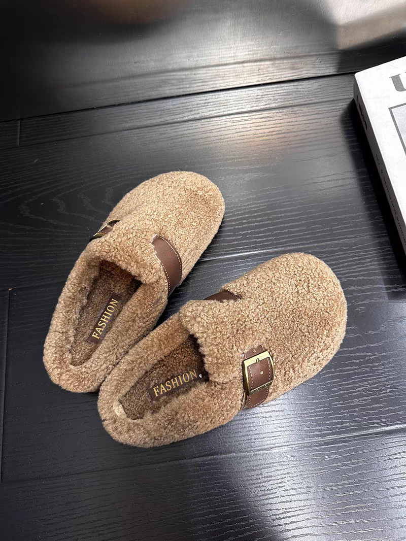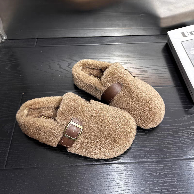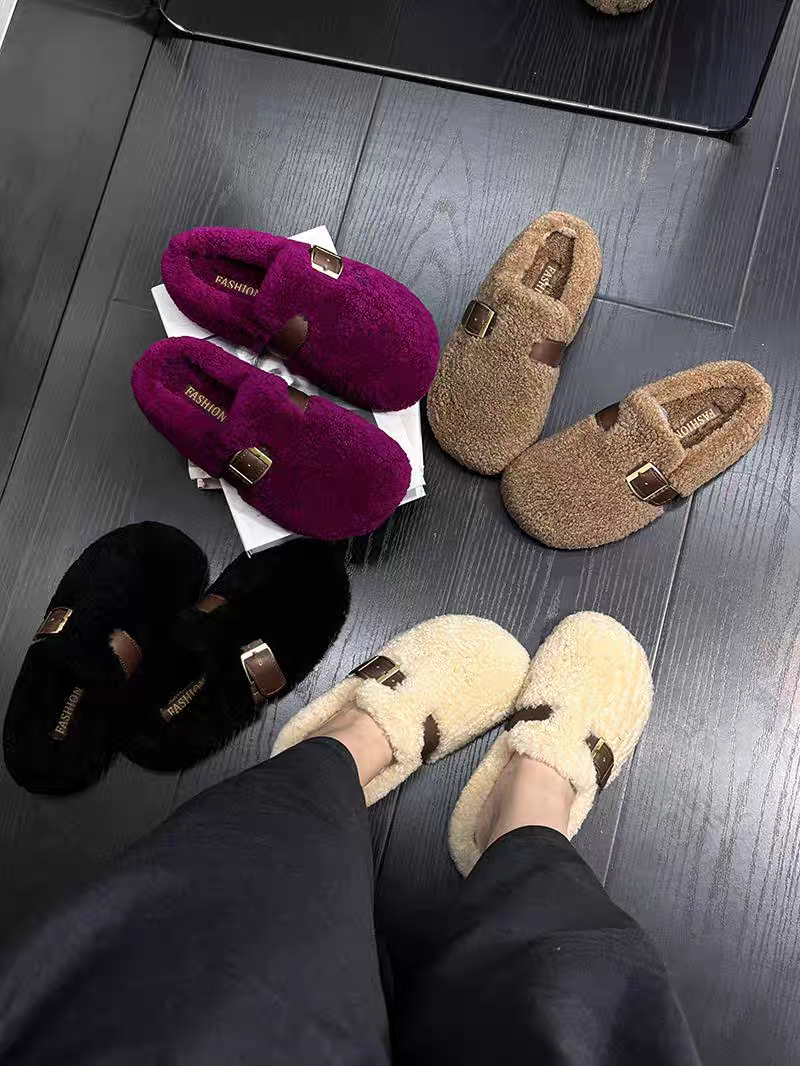 厚底ファー付きシューズ レディース 秋冬用 新作 ネット流行 ファッション ラムウール 裏起毛 大きいサイズ ボーケン風スリッパ 4143