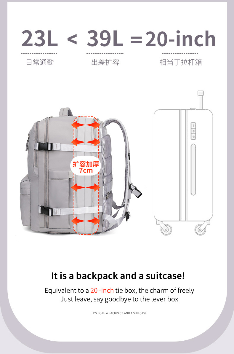 クロスボーダー新型拡張リュックサック男女シンプル旅行レジャーノートカバン大容量バッグ靴倉庫リュックサック