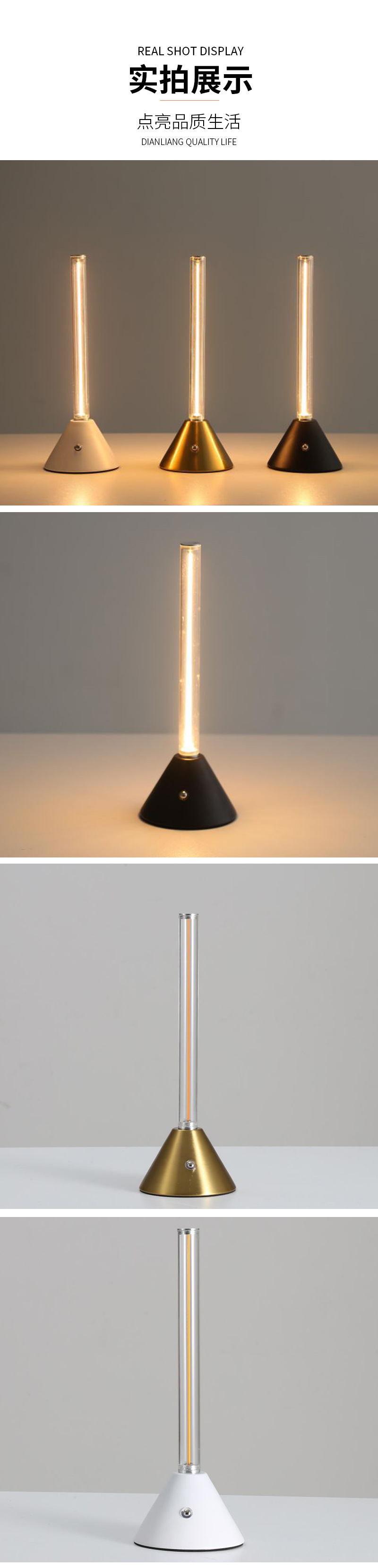 クリエイティブ挿入式ボトルライト三色調光金属ボトル電気スタンド充電式LED発光電気スタンド