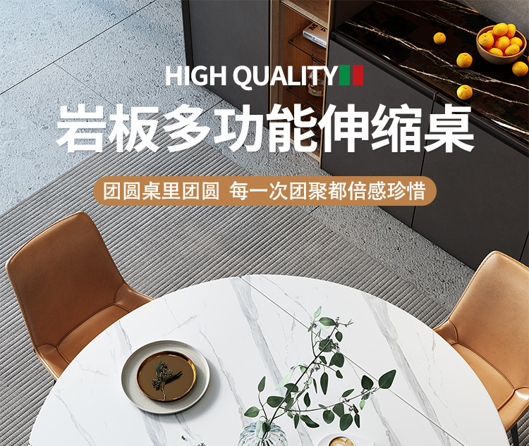可伸缩岩板餐桌椅组合现代简约家用小户型休闲折叠两用可变方圆桌