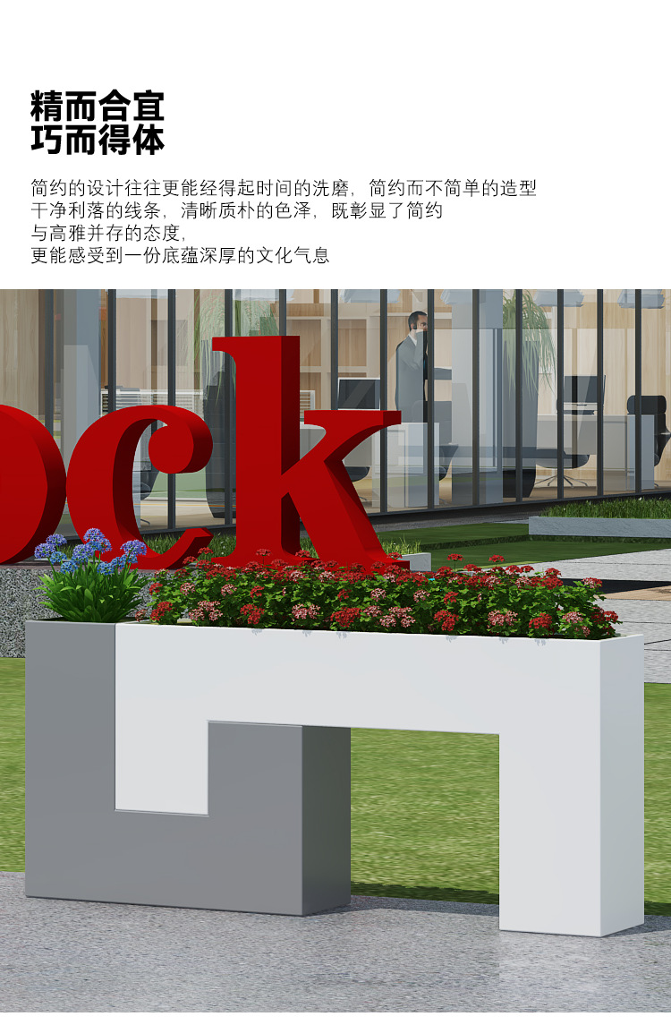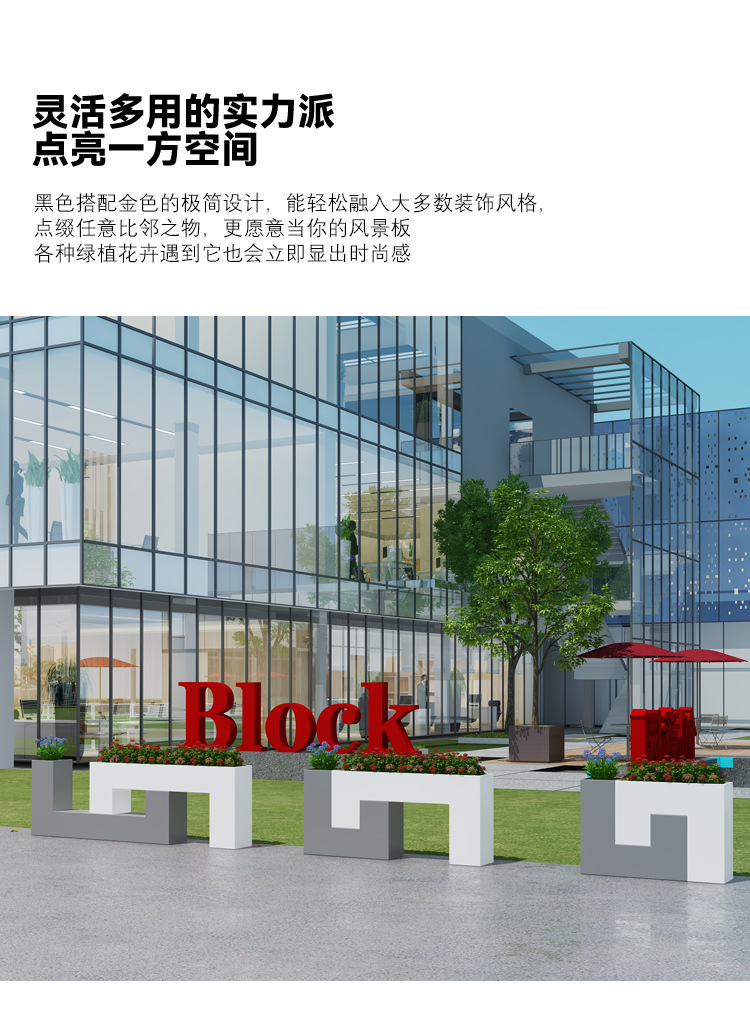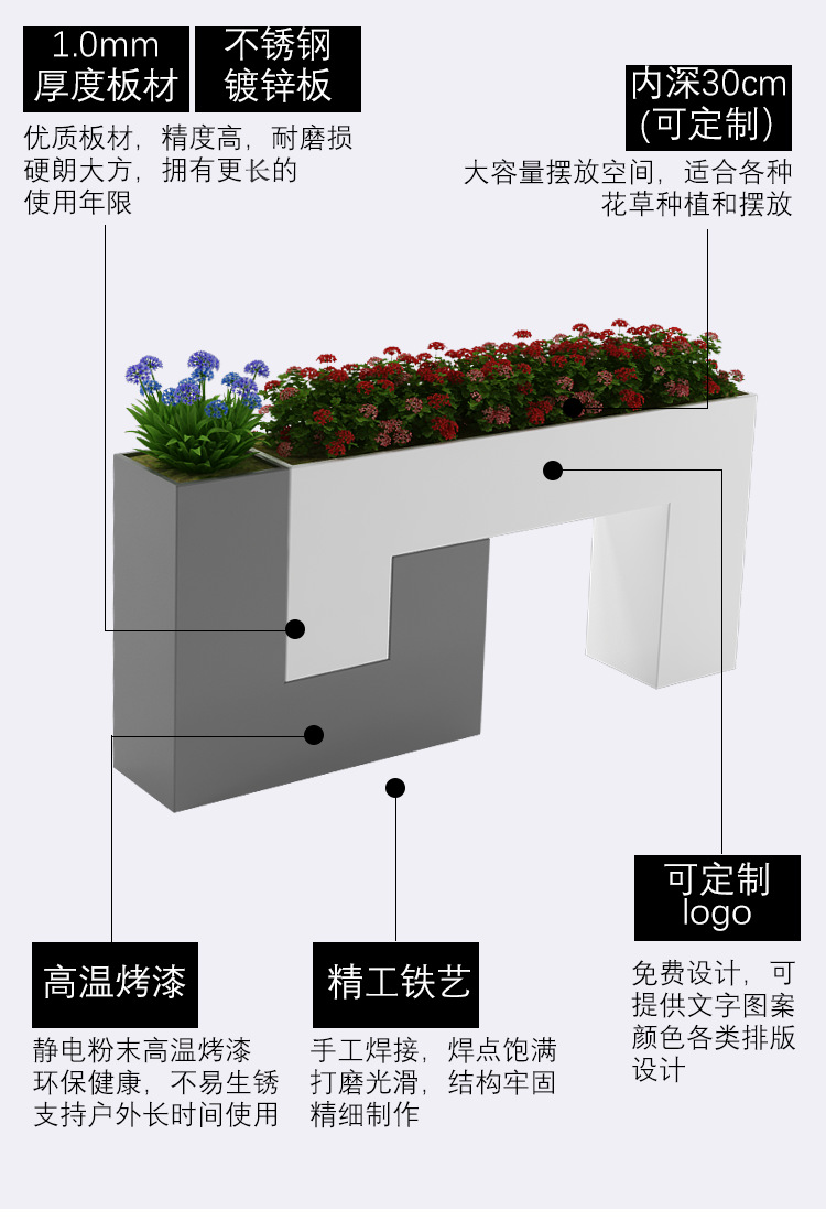 铁艺户外长方形花箱花架花盆商业街花坛室外回型花槽隔断组合