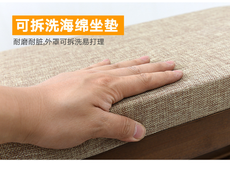 日式实木沙发新中式全实木复古沙发北欧布艺小户型客厅直排三人位
