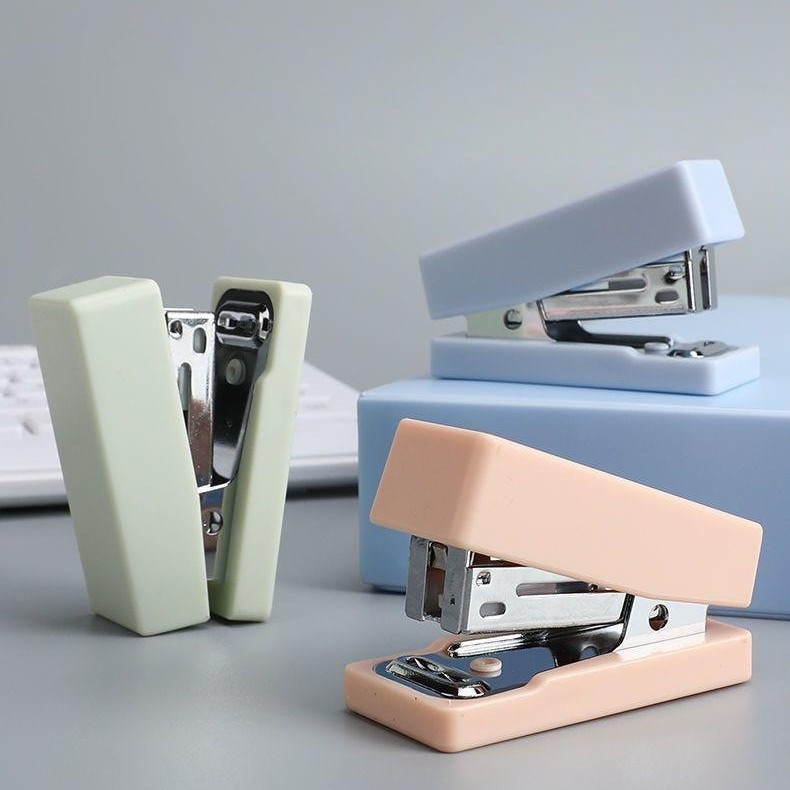 透明ミニホッチキス学生用小型トランペットホッチキスハンドグリップ式高颜値定书机ポータブル纸