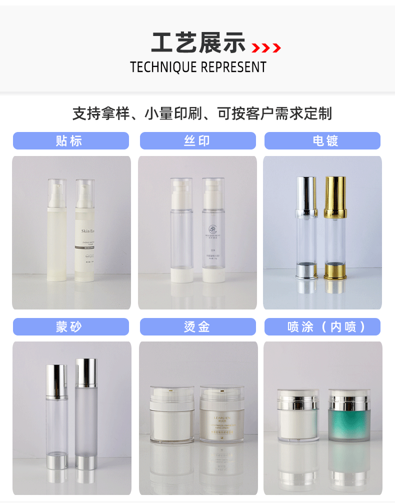 現物メッキasプレス分注真空瓶プラスチックプラスチックスプレー瓶化粧品分注瓶エッセンシャルローション瓶