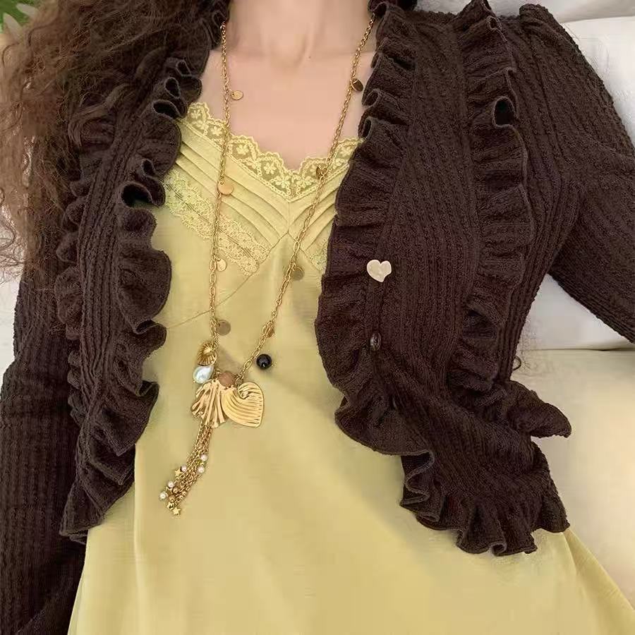 メッキ18k金貝殻ペンダントau 750素金流蘇鎖煙雨夢透かし彫り花糸ネックレス飾り彼女に贈る