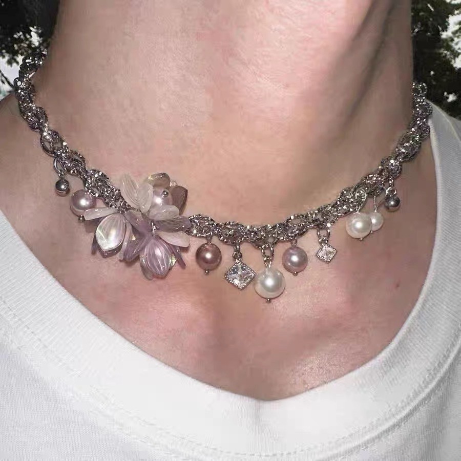 甘いギャルins風少女レトロレース花不規則真珠ペンダントネックレスchoker鎖骨鎖