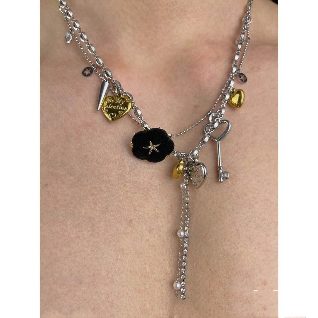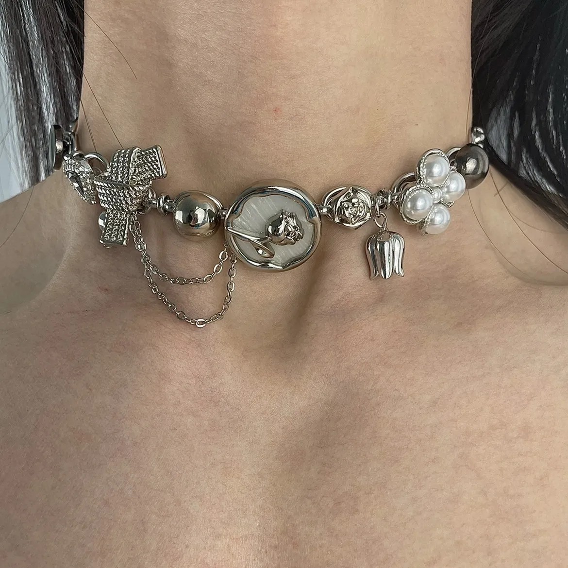 オリジナル中国式パンクローズネックレスレトロヴィンテージボタンロックチェーン気質高級チューリップアクセサリー