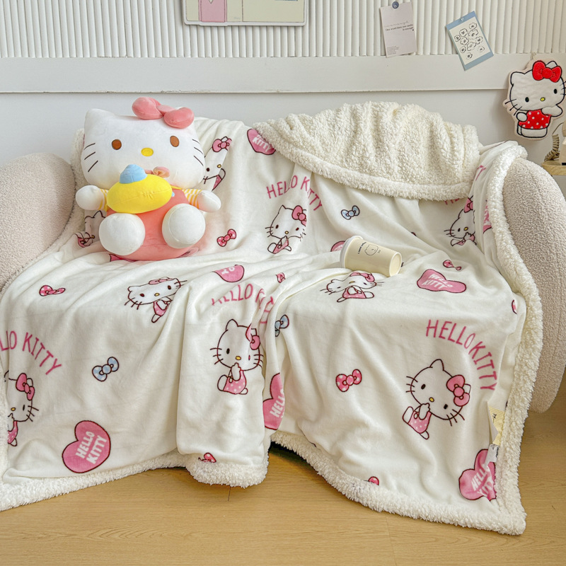 外贸卡通三丽鸥双面牛奶绒沙发旅行车内空调毯子办公室午休毯盖毯