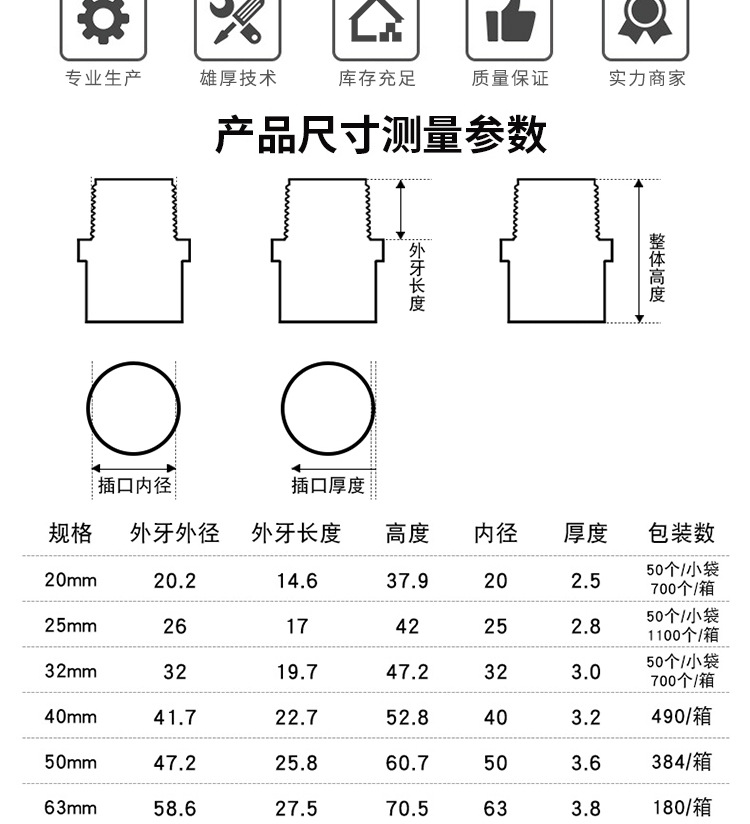 PVC給水部品20-110mm外糸継手外歯直通ねじストレート外ねじ継手卸売り