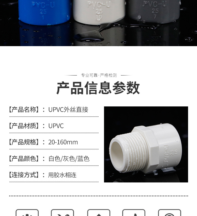 UPVC外歯直接活継手環境保護工業化学工業級PVC外糸直通ねじ継手水道部品