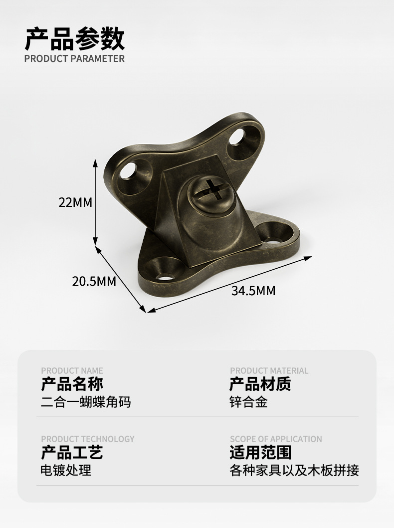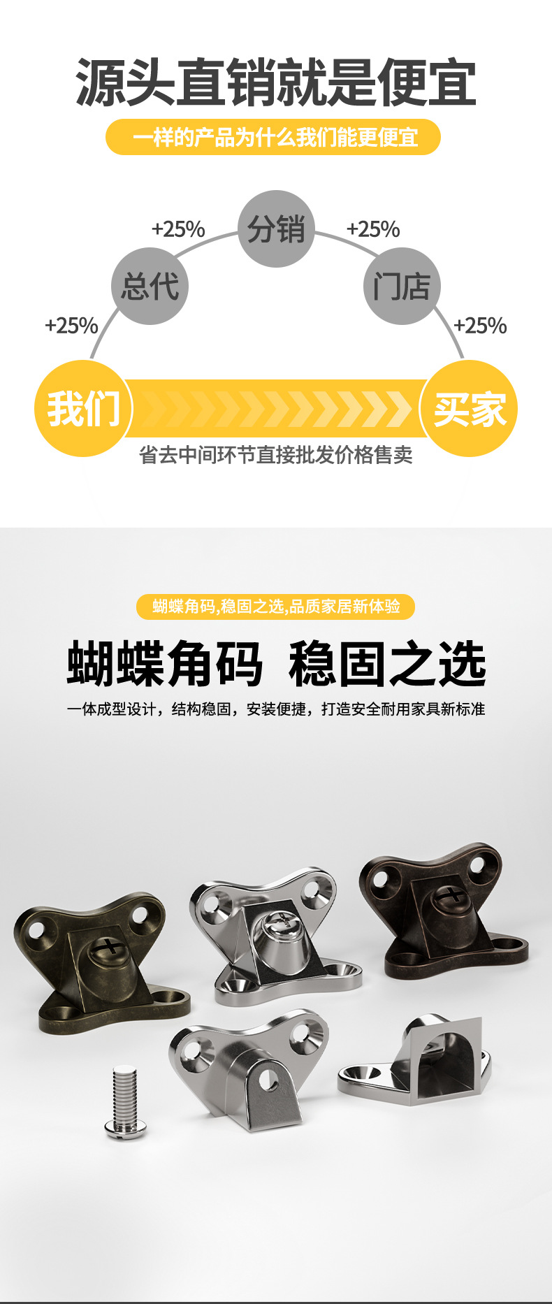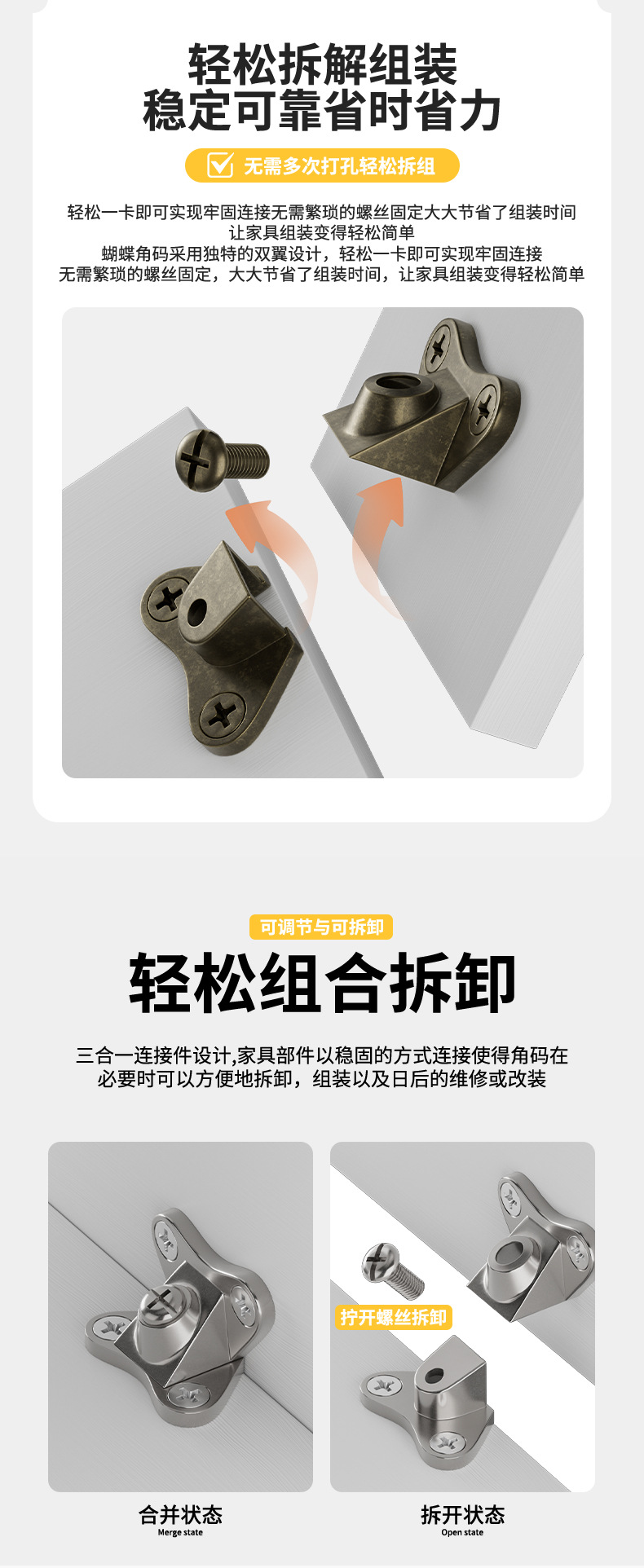 家具の穴を開けない三合一の接続部品のタンスのテーブルの椅子のベッドの固定DIYは蝶のコーナーボードのサポートを組み立てます。