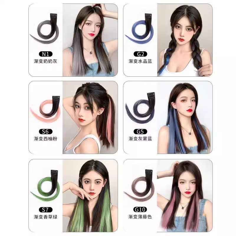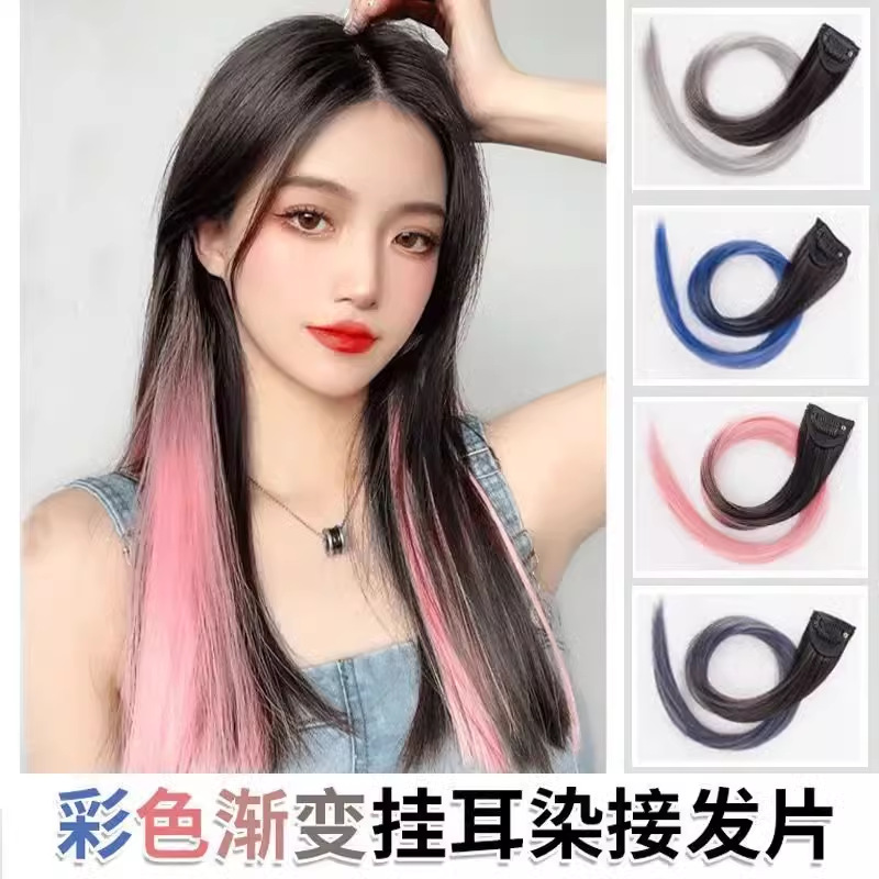 彩色挂耳染假发片挑染渐变色假发一片式自然无痕挂耳染隐形假发片