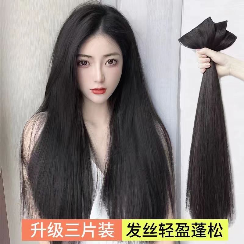 女性用ウィッグ ロングヘア 三ピース巻き毛エクステ 跡が残らない ふんわり増毛 水波紋ウィッグ ブラウンブラックの毛根