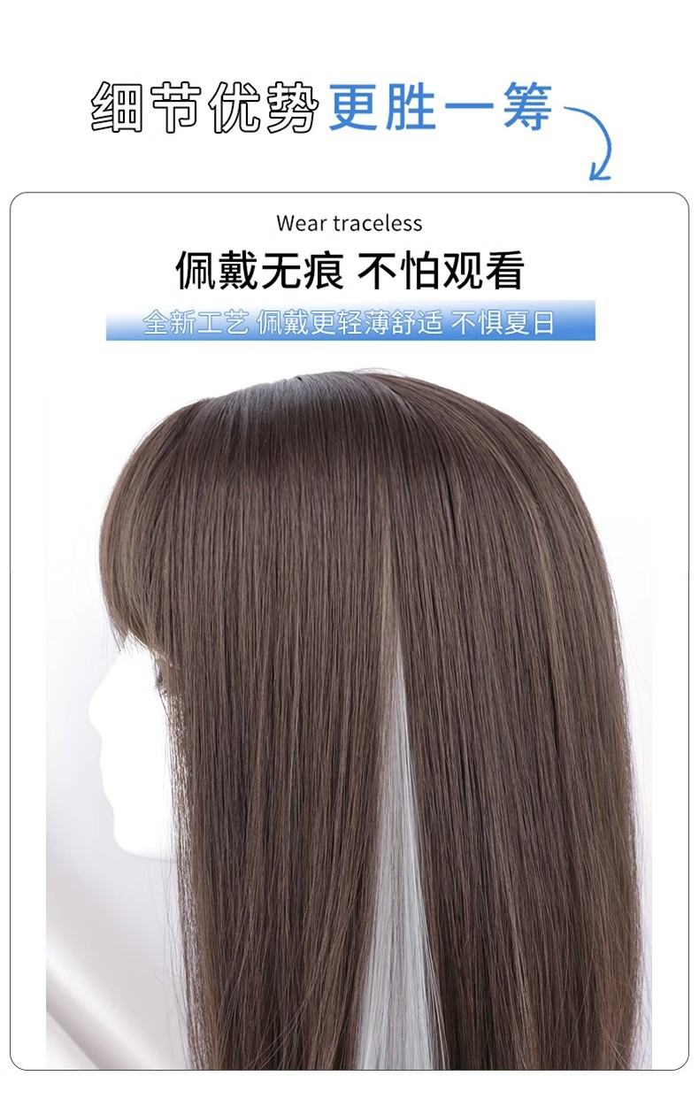 3d野生の前髪のかつらの女性の切れのすべての本物の髪のフランスの空気の偽の前髪の自然な額の頭の頂は高い頭の頂を補います。