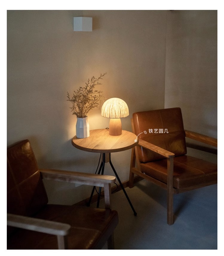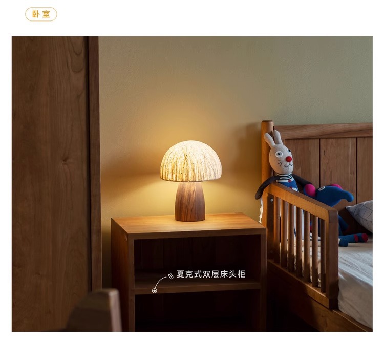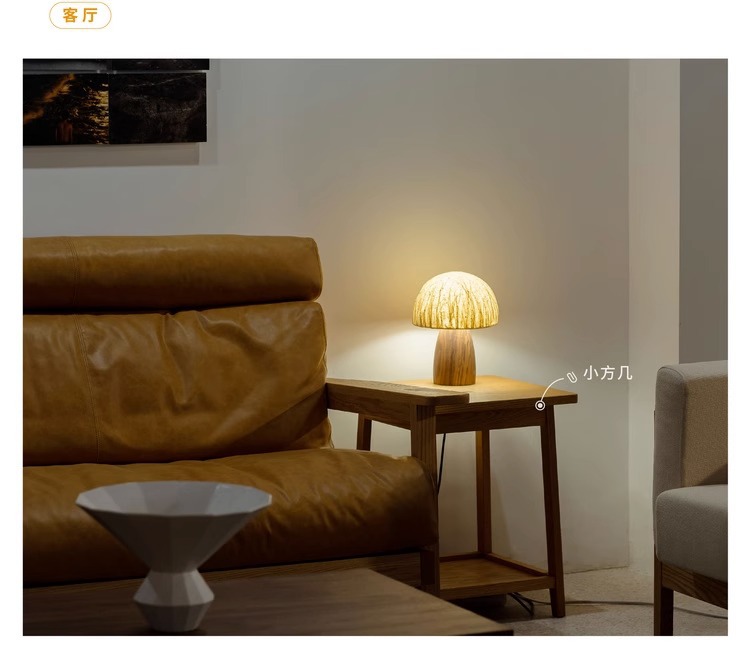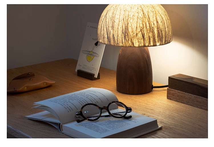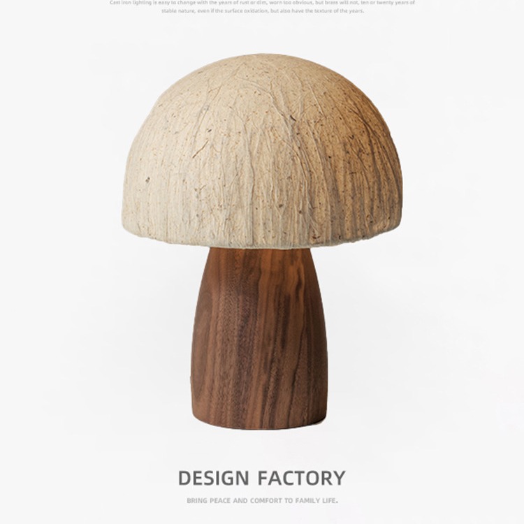 フランス中世テーブルランプレトロキノコランプリビングルームベッドルームベッドサイドランプ和風わびさびスタイルウォールナットカラー雰囲気ランプ