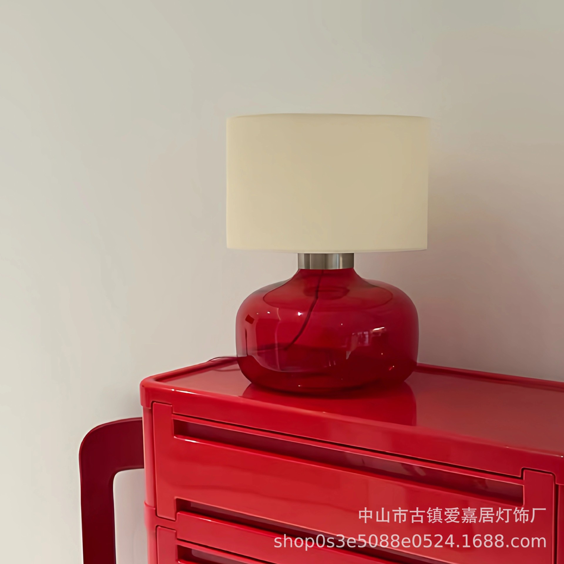 中古彩色玻璃台灯包豪斯红色设计师款书房装饰灯卧室氛围灯床头灯