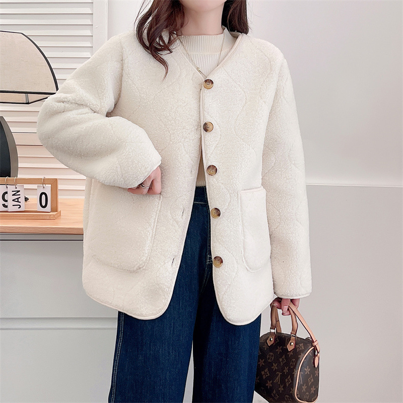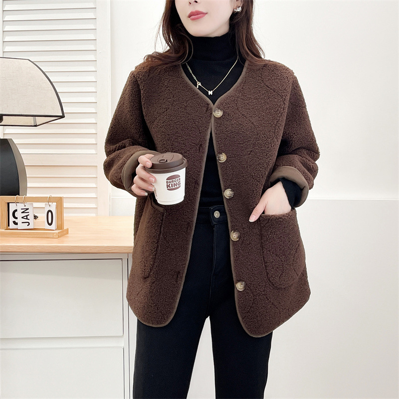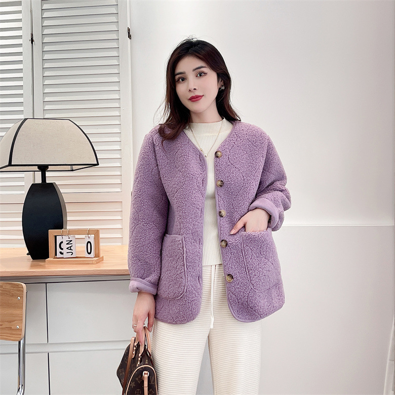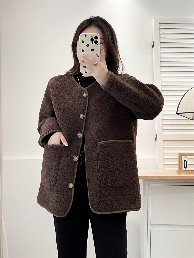 2024秋冬の粒の絨毛のコートの大きいサイズの婦人服はやせているファッションの200斤の太っている妹の絨毛の服の簡単な組み合わせの882を現します。