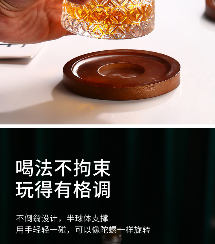 クリエイティブ洋酒ウイスキーカップ家庭用回転ジャイロカップベース付きins冷たいカップ高颜値解凍カップ