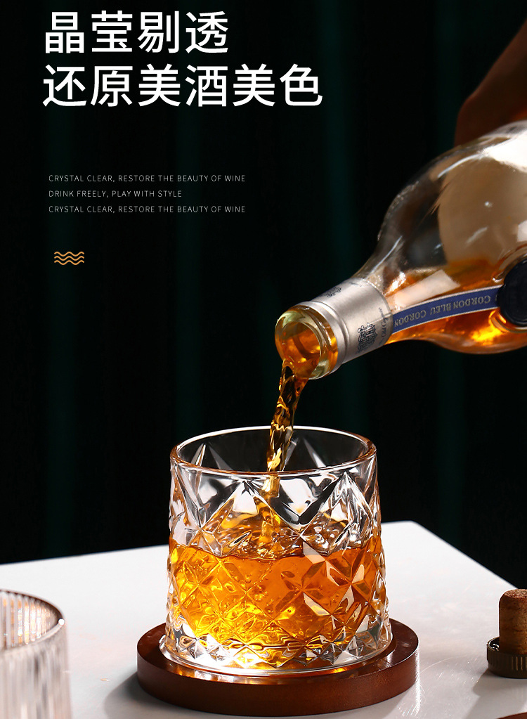 厚い回転水晶ガラス杯ins風北欧ウイスキーカップ創意個性洋酒タンブラーカップ
