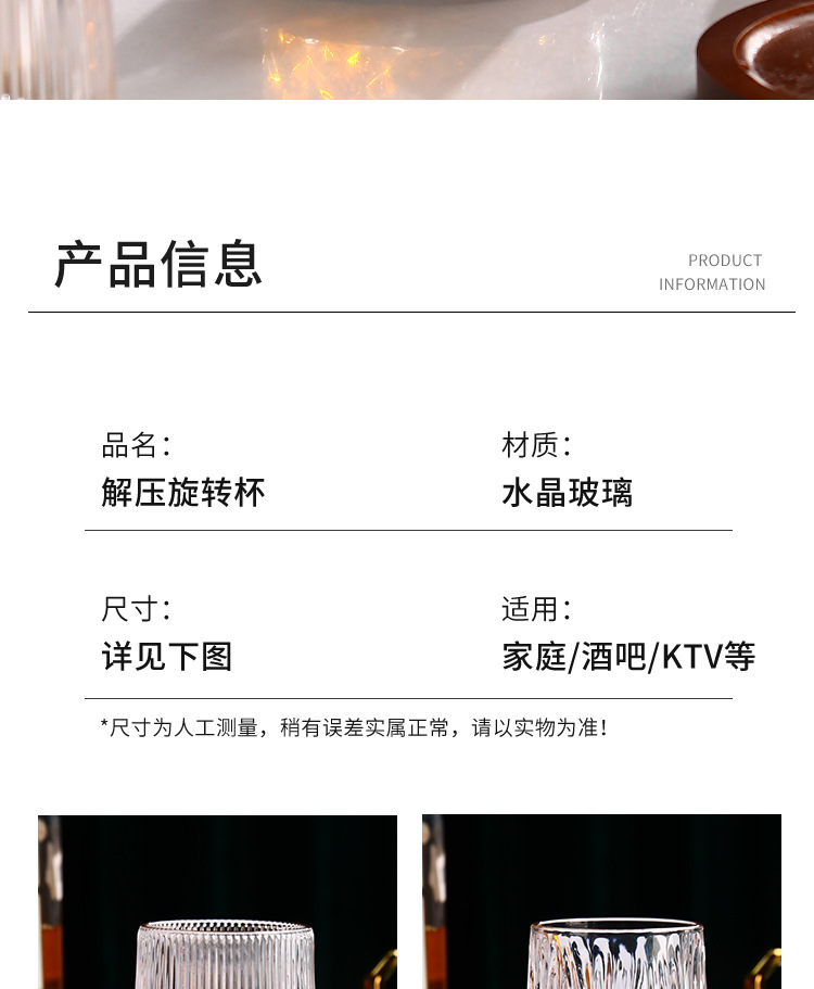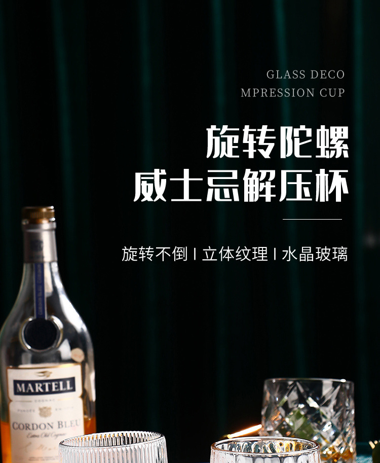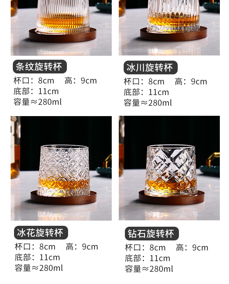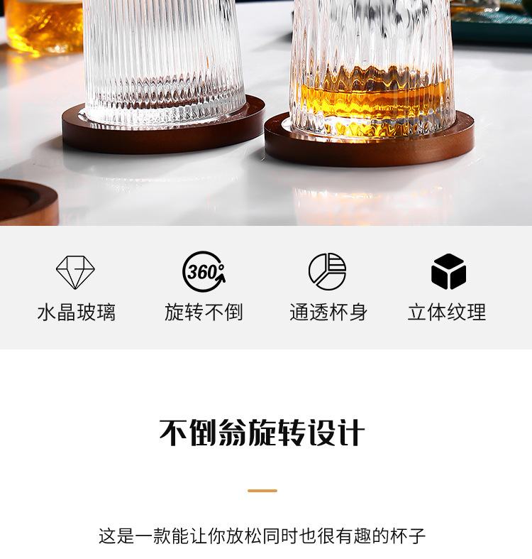 创意洋酒威士忌杯家用旋转陀螺杯带底座ins冷饮杯高颜值解压水杯