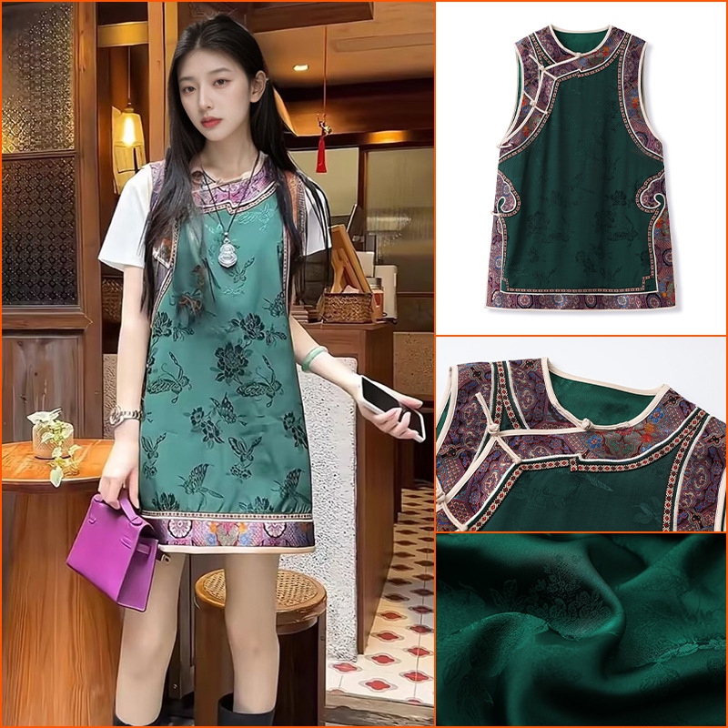 新中式宋錦提花サテンプリントベスト 軽奢風デザイントップス ZX型M4013