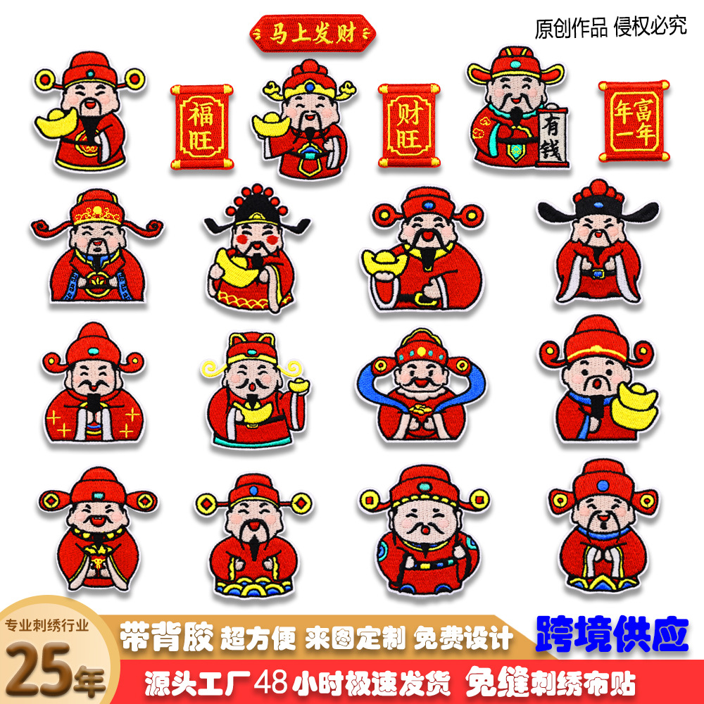 新年财神刺绣布贴马上发财喜庆贴自粘手机壳手账红包DIY装饰布贴