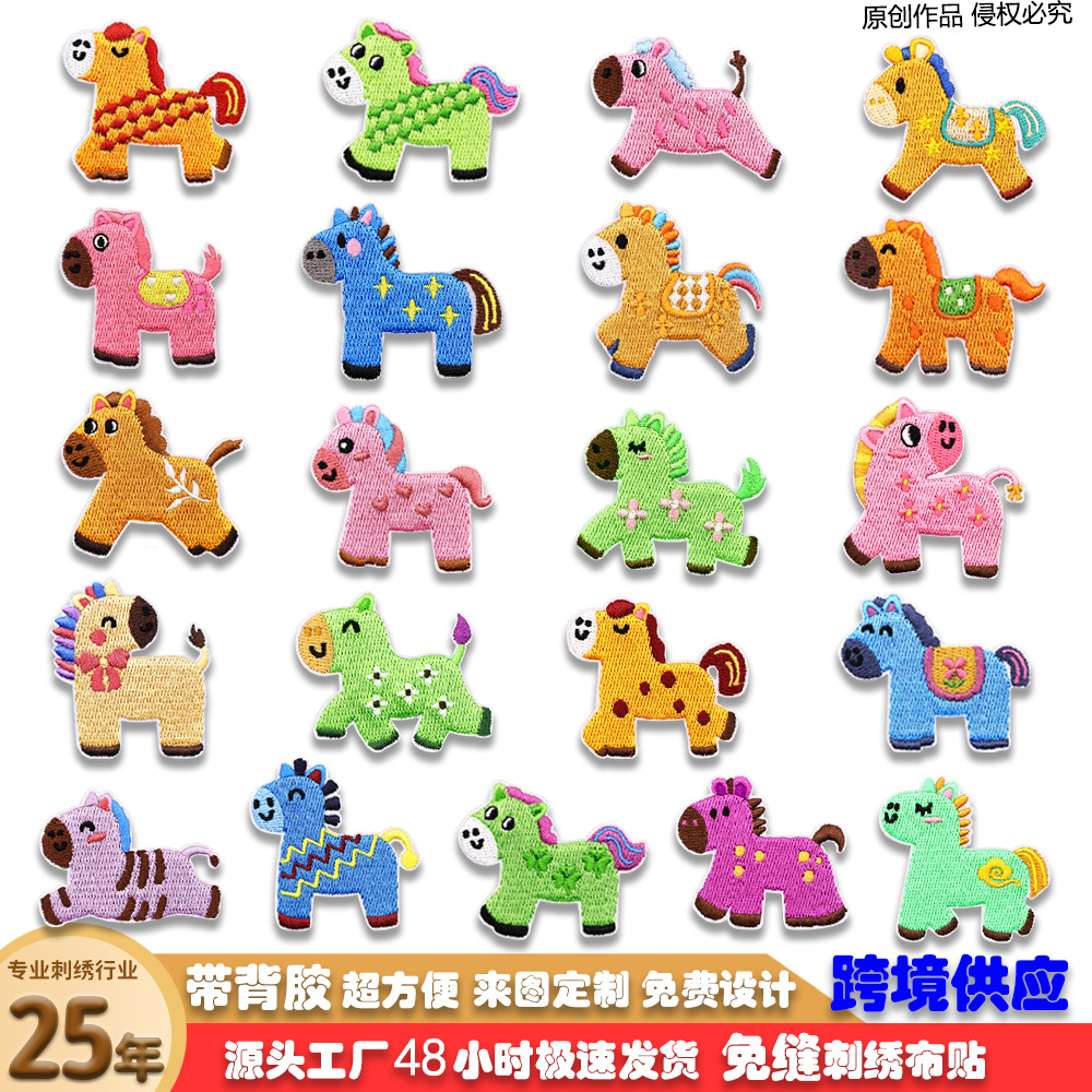 马年自粘胶小马驹刺绣布贴可爱动物绣花贴服装补丁贴手机壳装饰贴