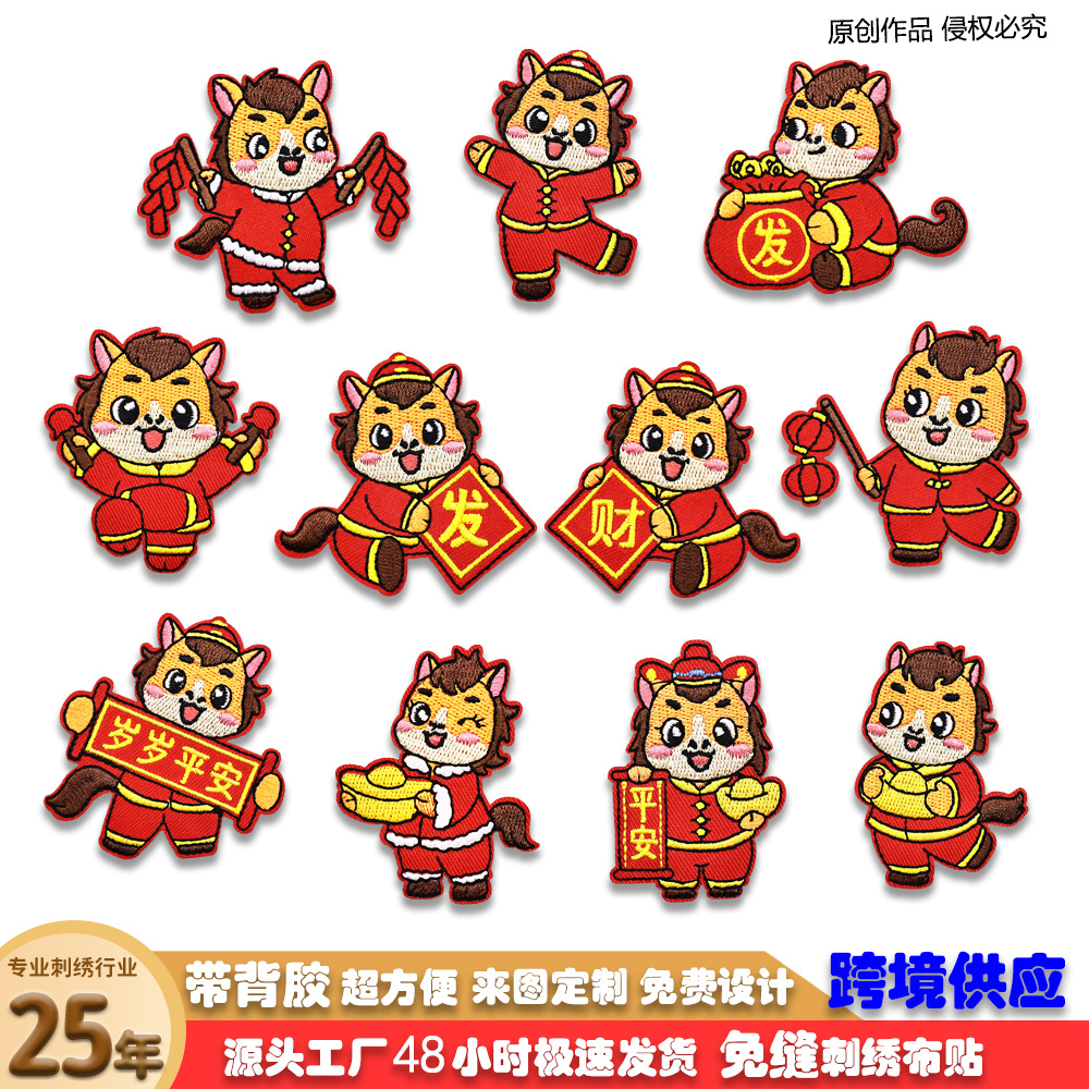 2026年新年刺绣布贴红红火火马上发财补丁贴服装鞋帽装饰布标布贴