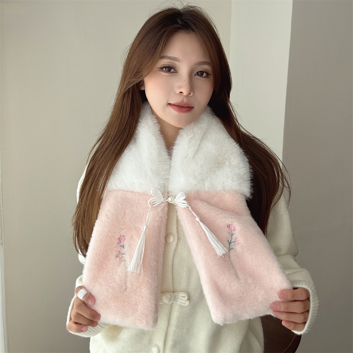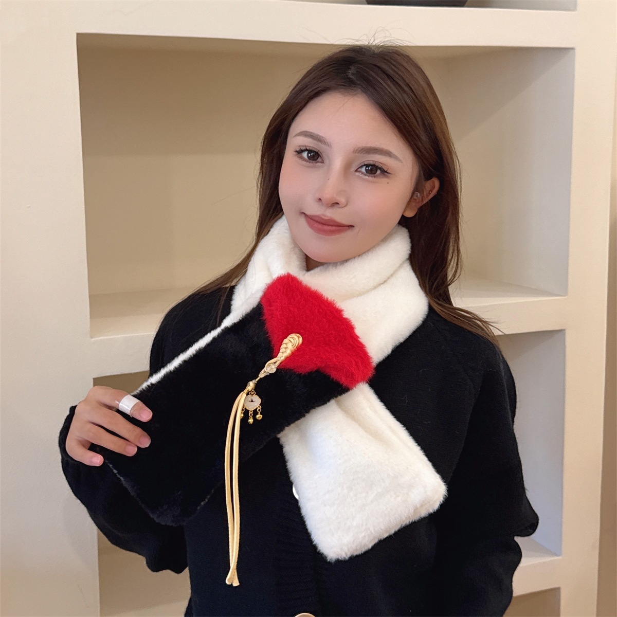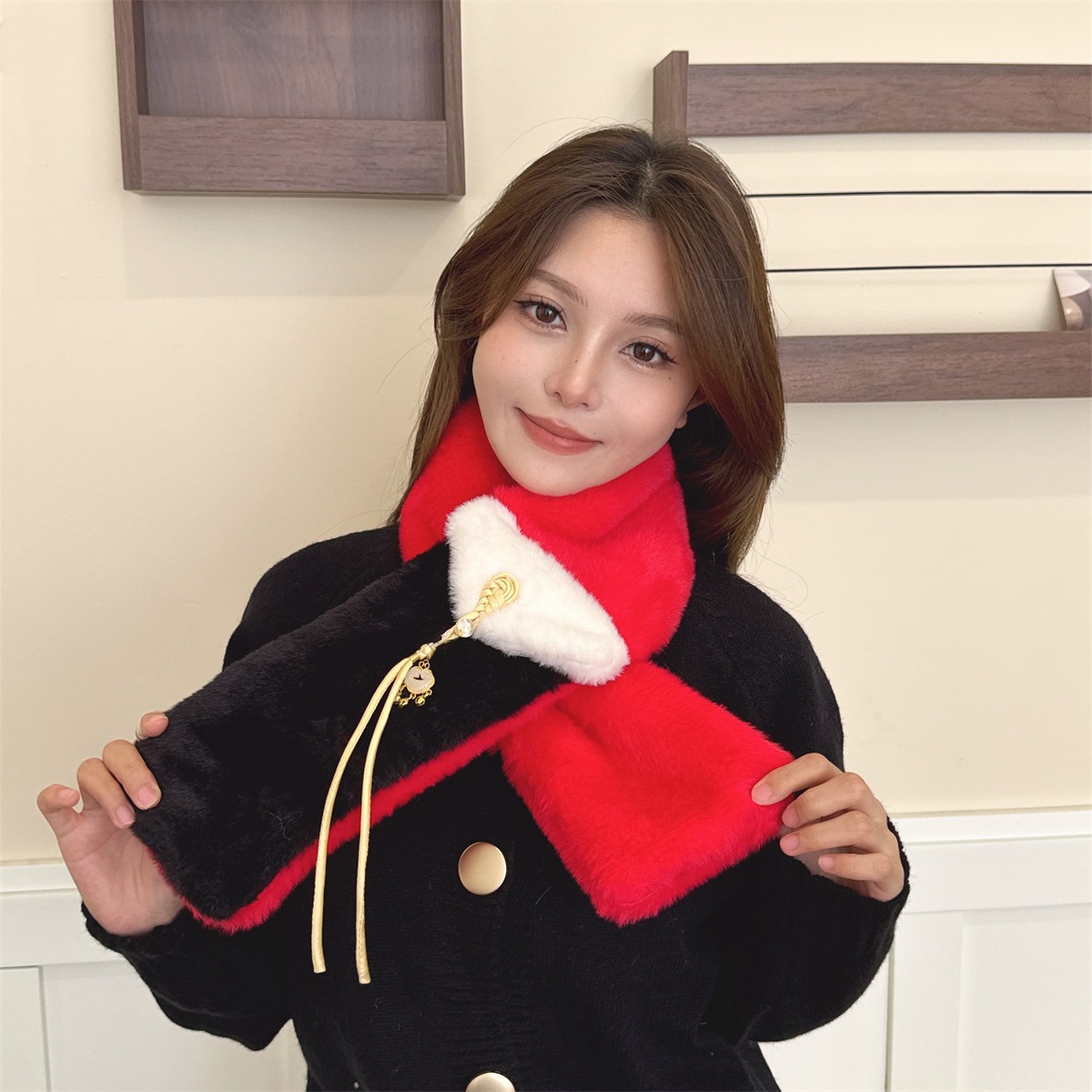 2024オリジナルの新型クロスマフラー女性冬保温百合学生カップルのマフラーのぬいぐるみはウサギの毛に似せている