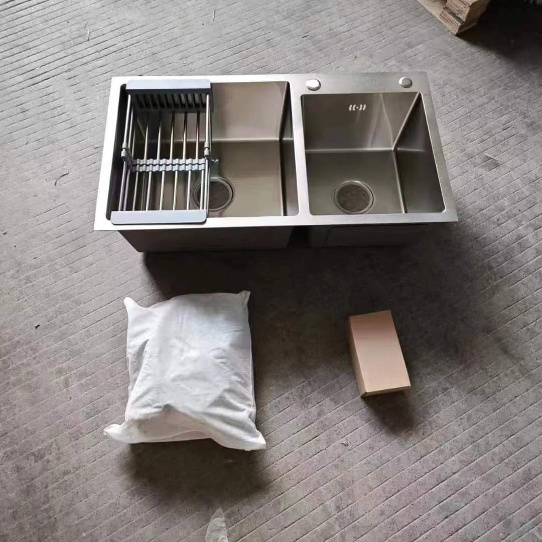 201材质 拉丝131元 78x45*21cm, 3.0mm + 0.8mm 纳米涂层,带下水,沥水篮,