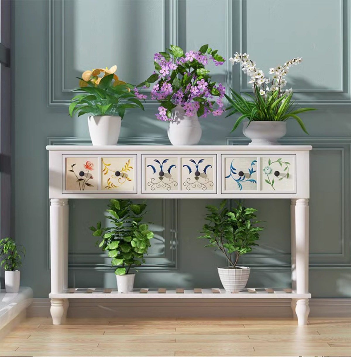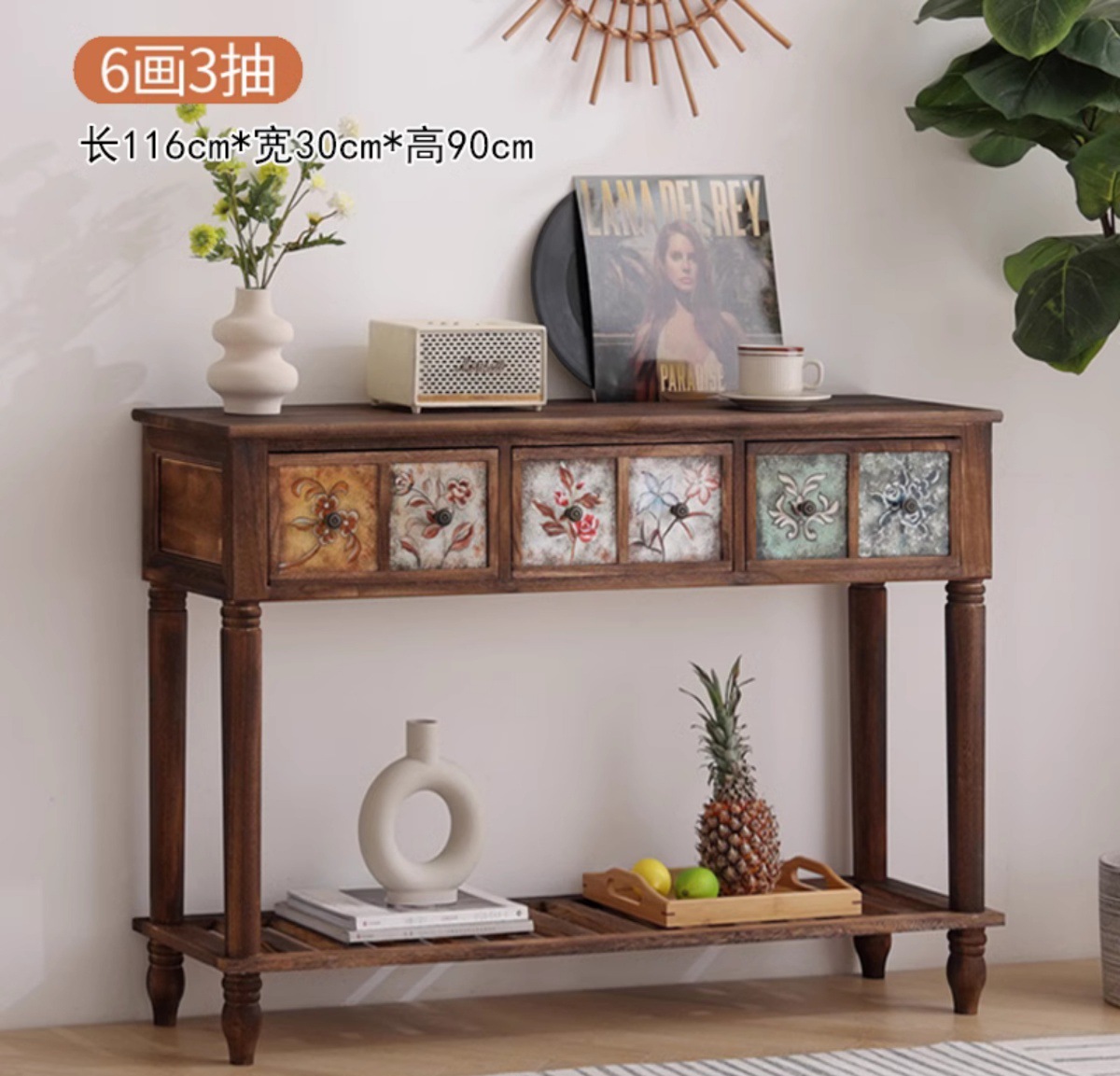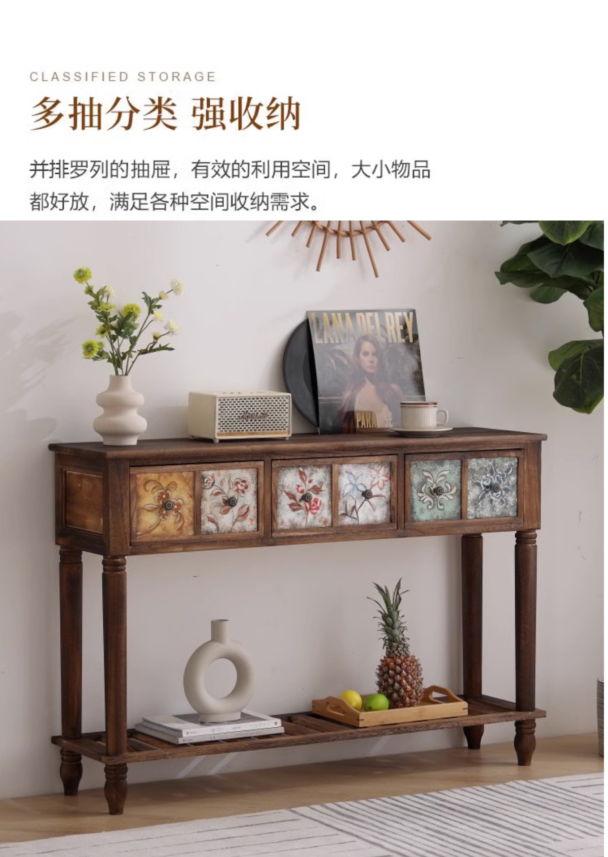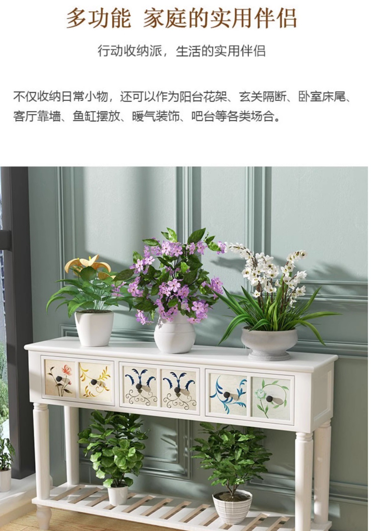 美式实木花架阳台置物架室内装饰花架子客厅落地式艺术花店陈列桌