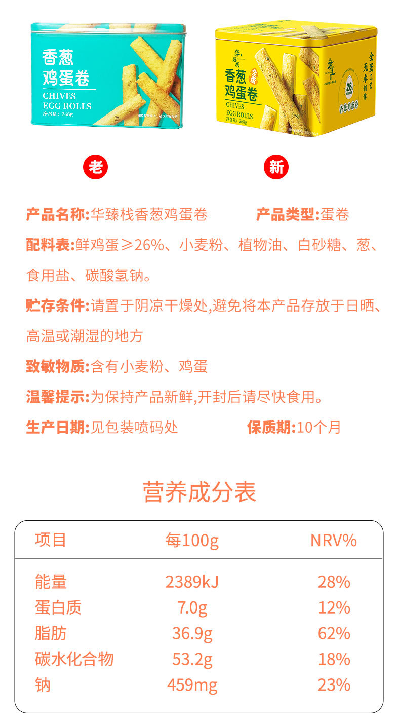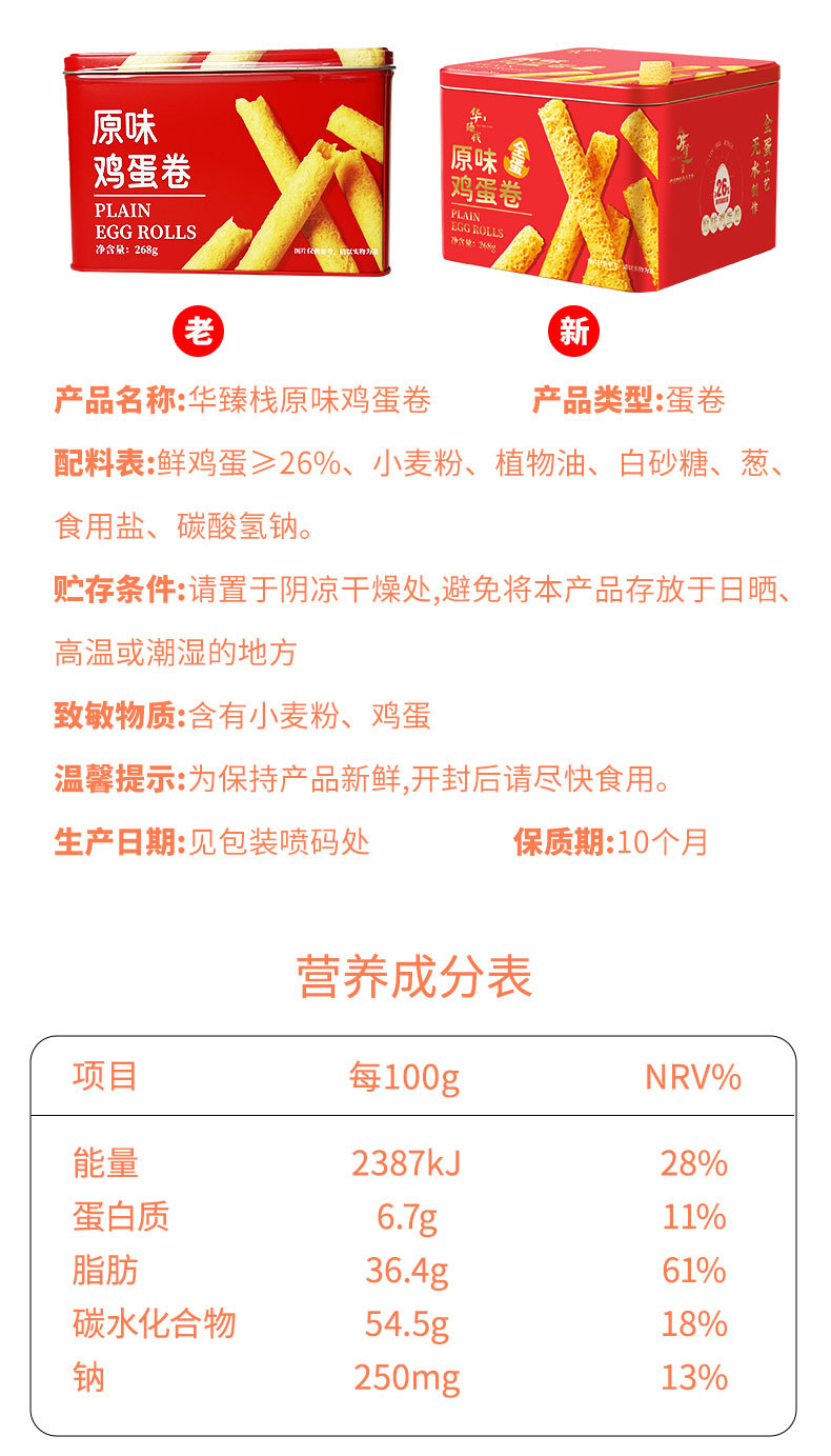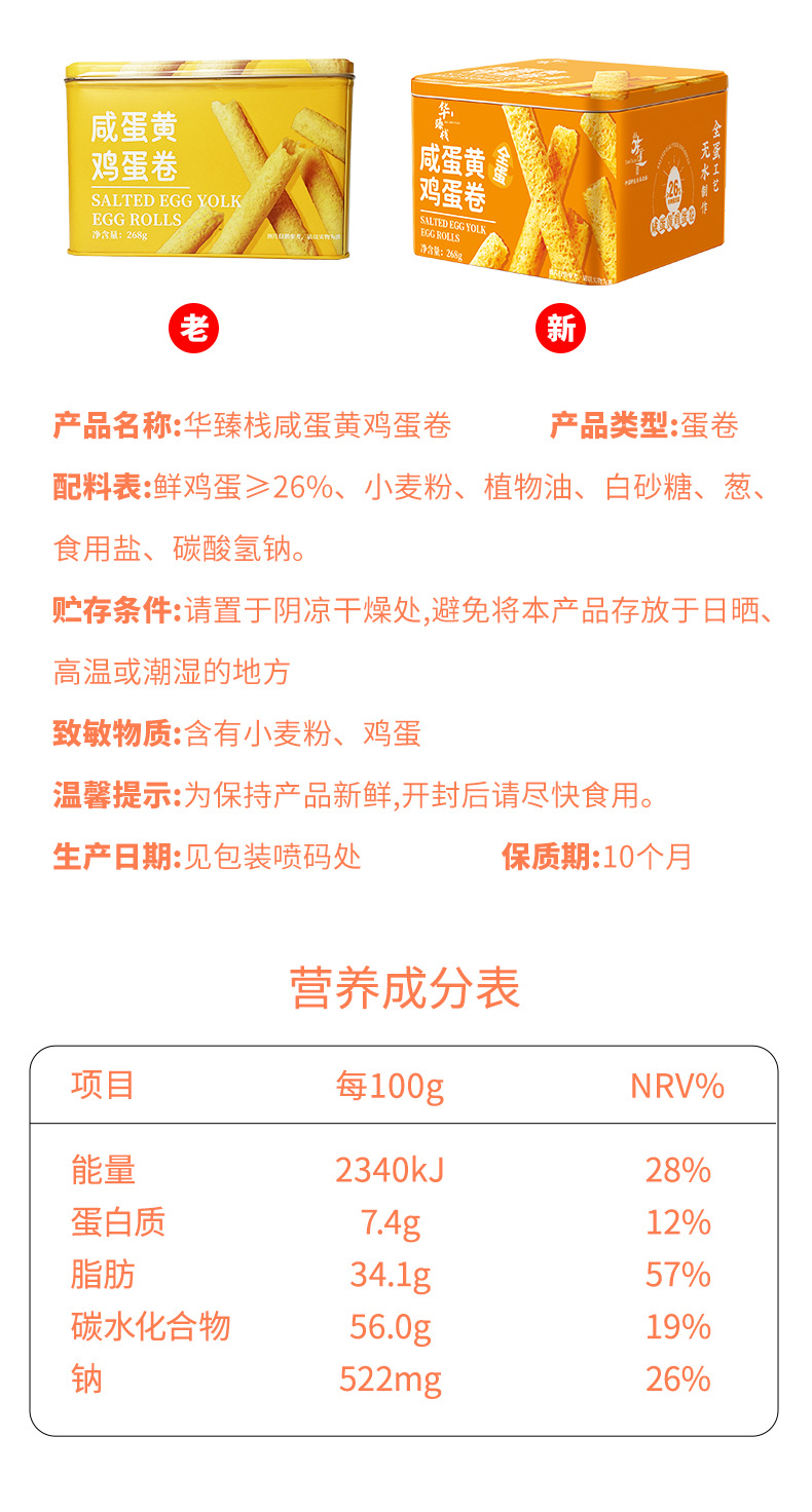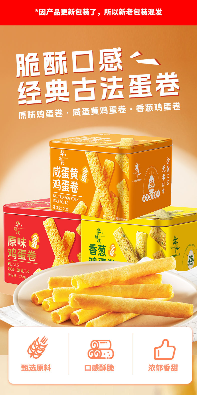 華臻スタック卵巻268g大鉄箱入り原味塩漬け卵巻伝統菓子年物ギフトボックス間食お土産