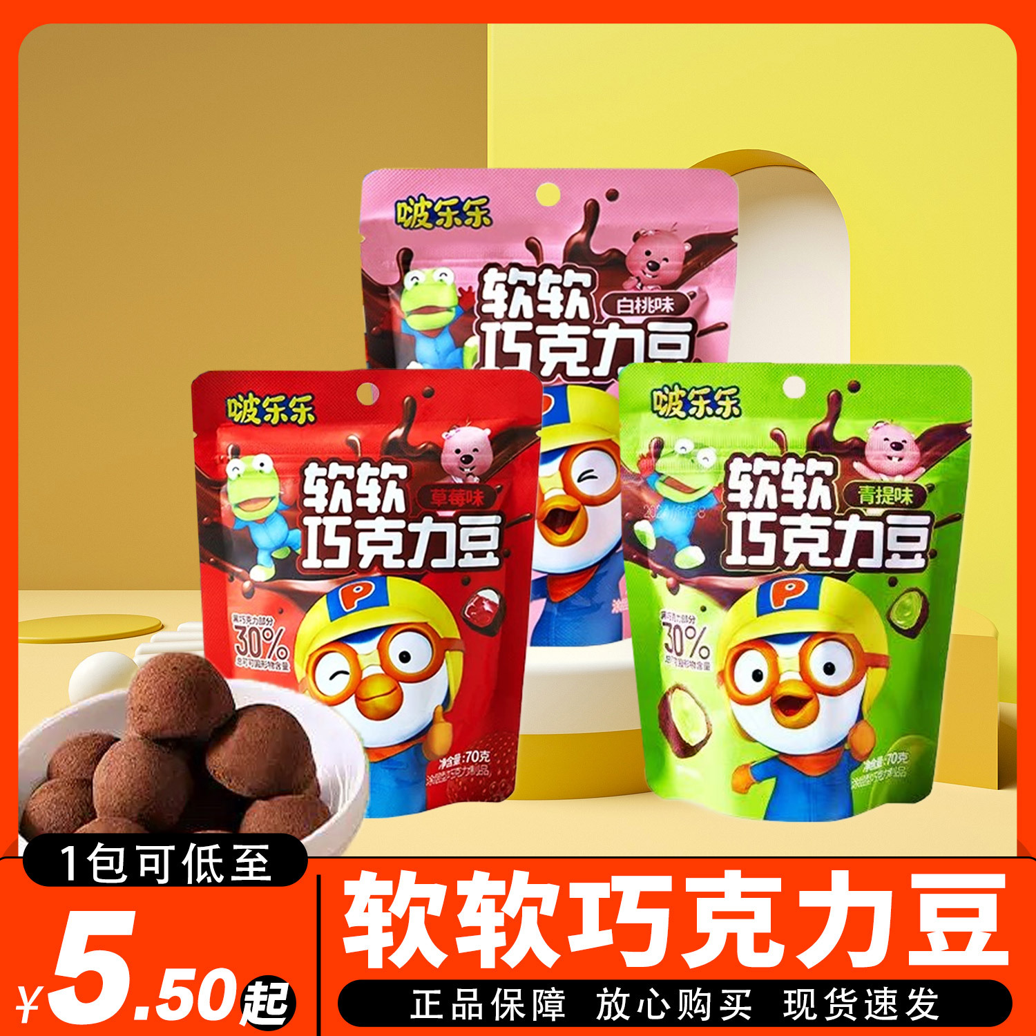 啵乐乐软软巧克力豆水果味青提草莓白桃口味儿童休闲可可制品70g