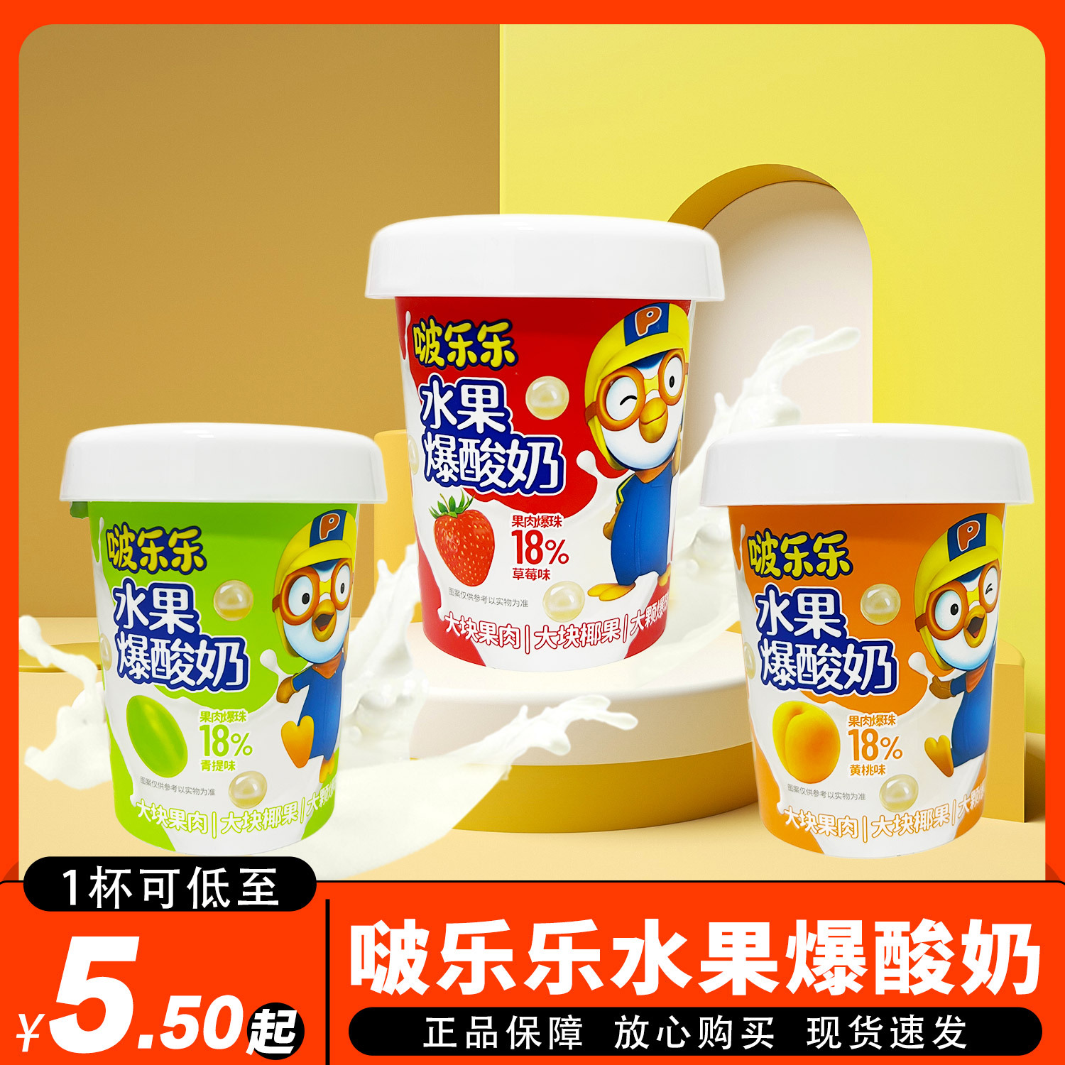 啵乐乐水果爆酸奶260g*6杯水果味草莓青提黄桃酸奶甜品休闲零食
