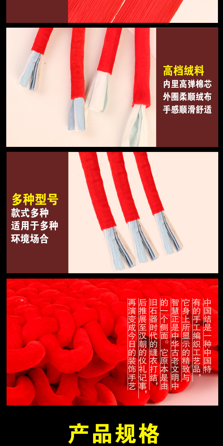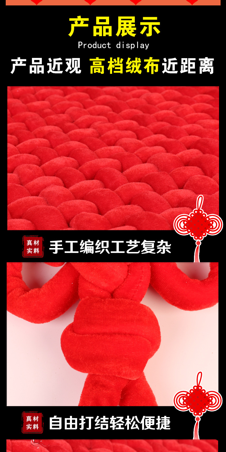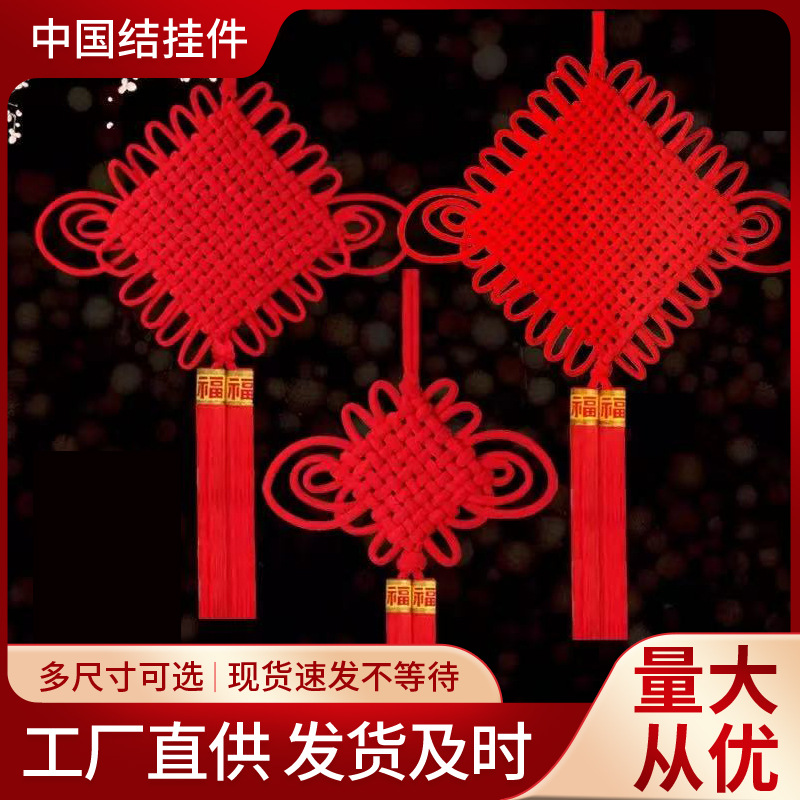 メーカー直送のベルベット結び飾り、住宅入居祝い用中国結び飾り、手編みの赤い大型中国結び飾り卸売