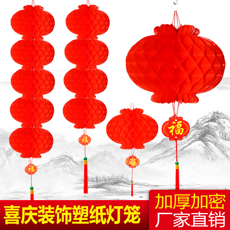 卸売プラスチック製提灯、連続ハニカム提灯、折りたたみ式プラスチックボール、平安灯、広告用紙、祝祭装飾、お祝い用