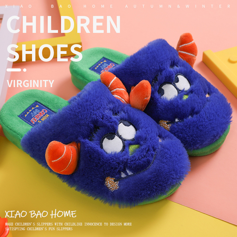 儿童棉拖鞋男童冬季室内男孩小朋友家居防滑女童毛毛拖鞋地板拖鞋