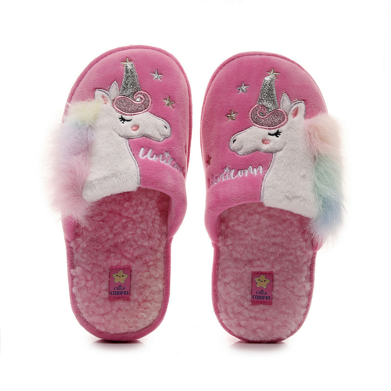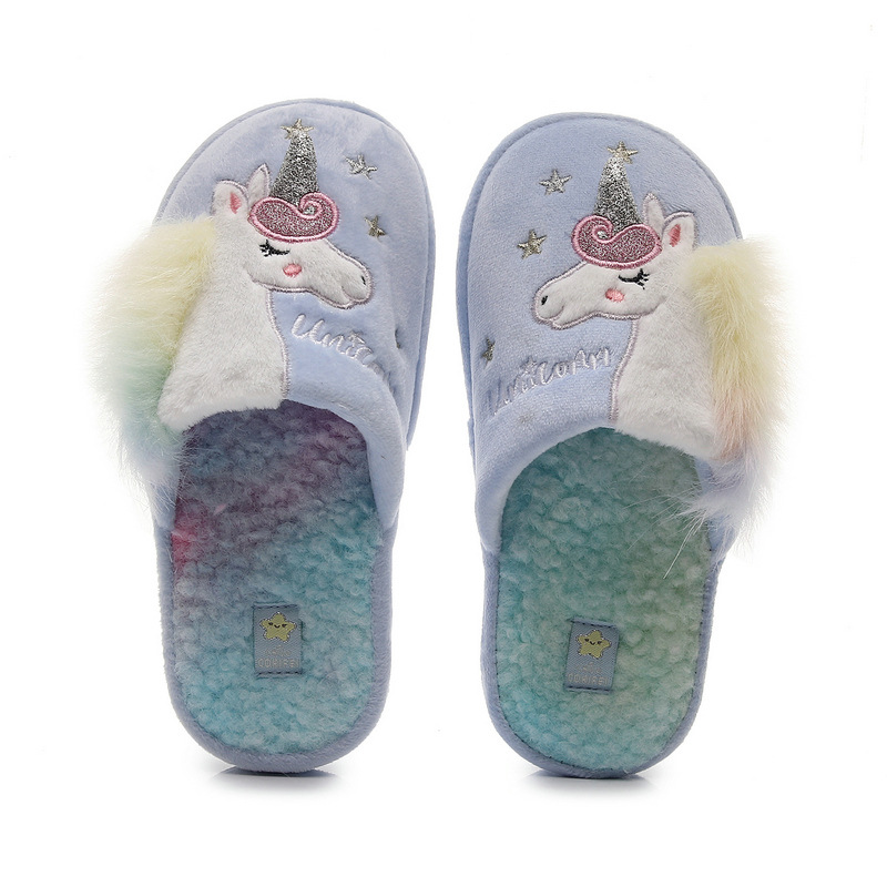 2025年新作 ジェイリフ 子供用綿スリッパ 秋冬 女の子 ユニコーン 可愛い漫画柄 輸出用スリッパ ドロップシッピング