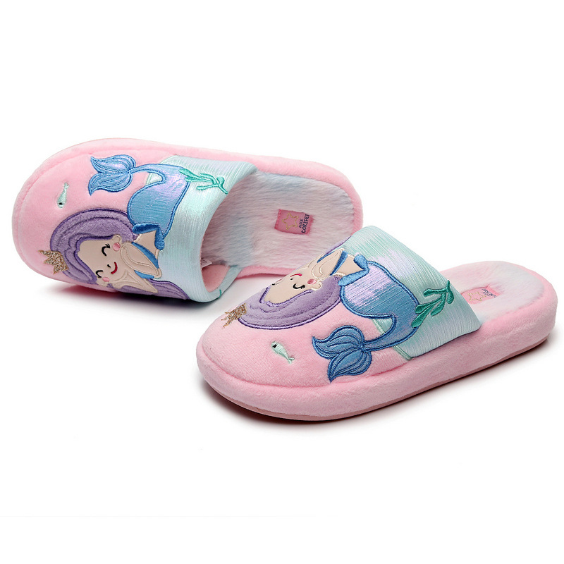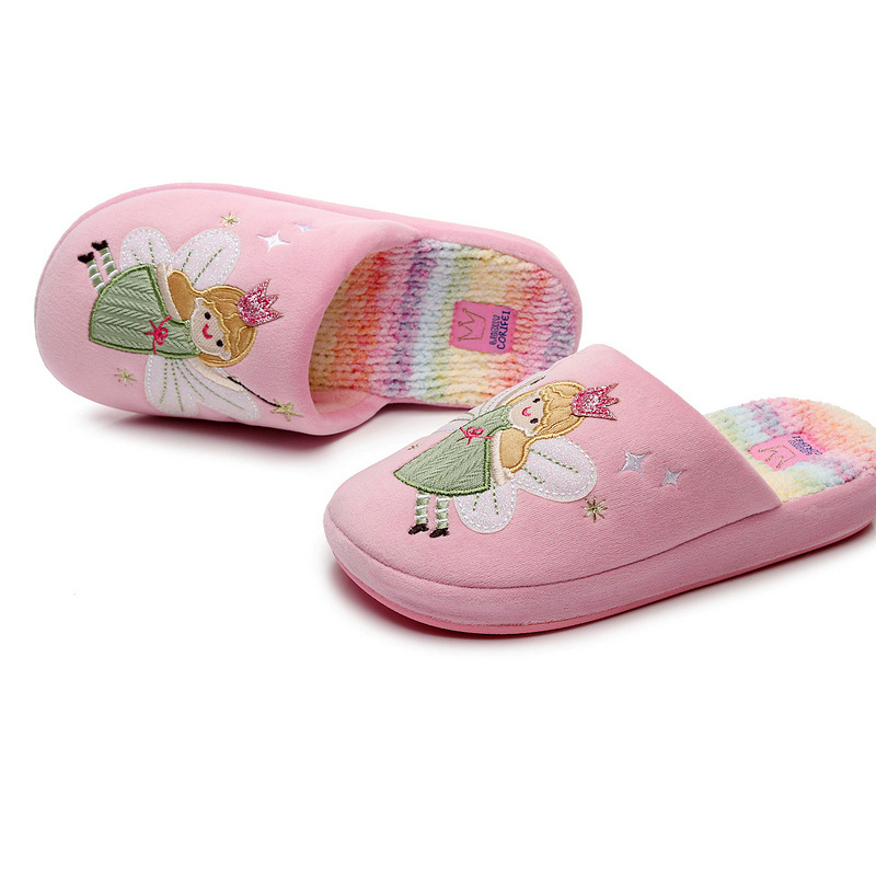 女の子用綿スリッパ 可愛い漫画柄 室内用 ファー付き 厚手 2025年新作 貿易越境卸売